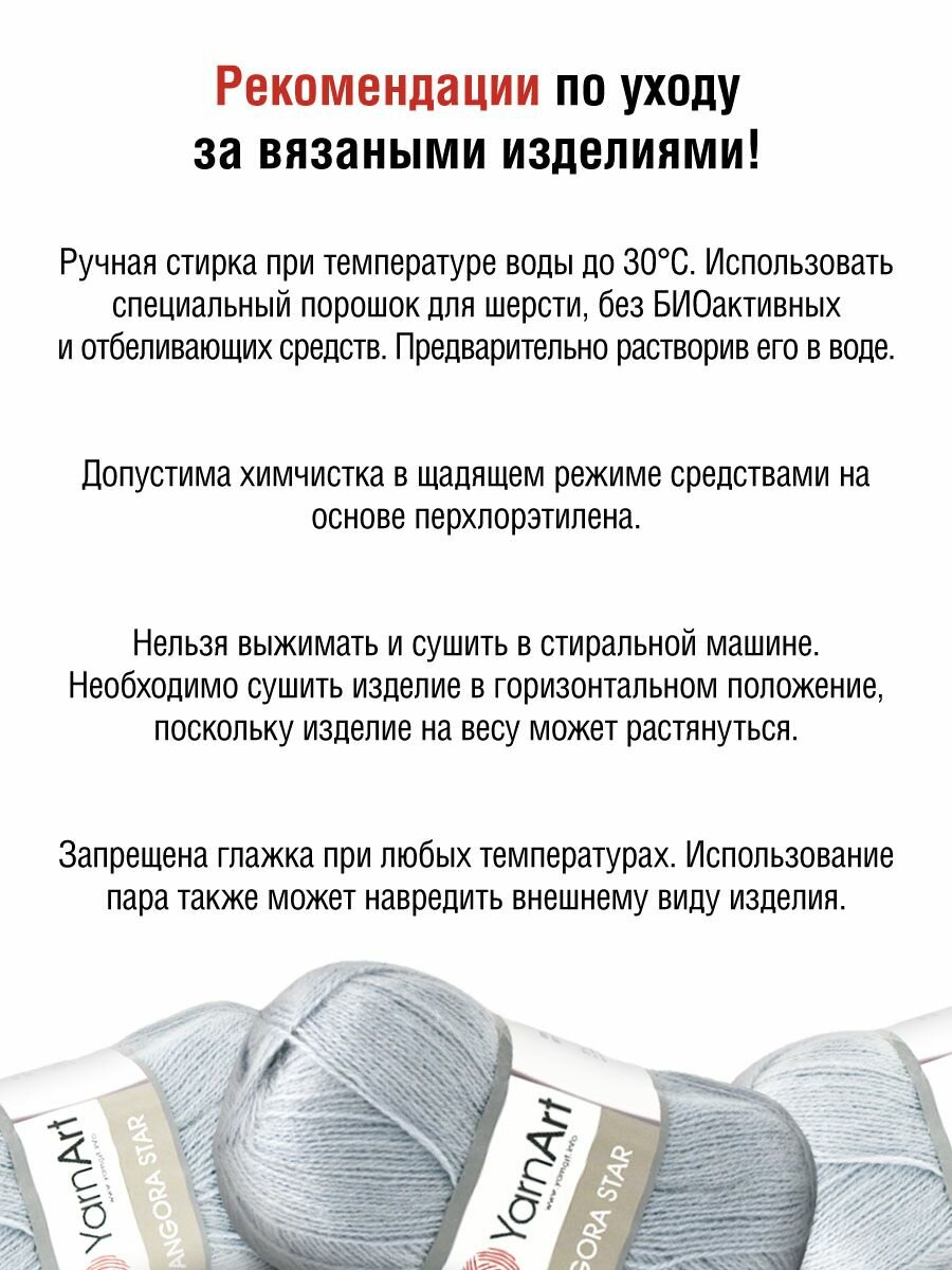 СохранитьПряжа для вязания YarnArt 'Angora Star', 100г, 500м (20% тонкая шерсть, 80% акрил) (3072 голубой джинс), 5 мотков интересное: