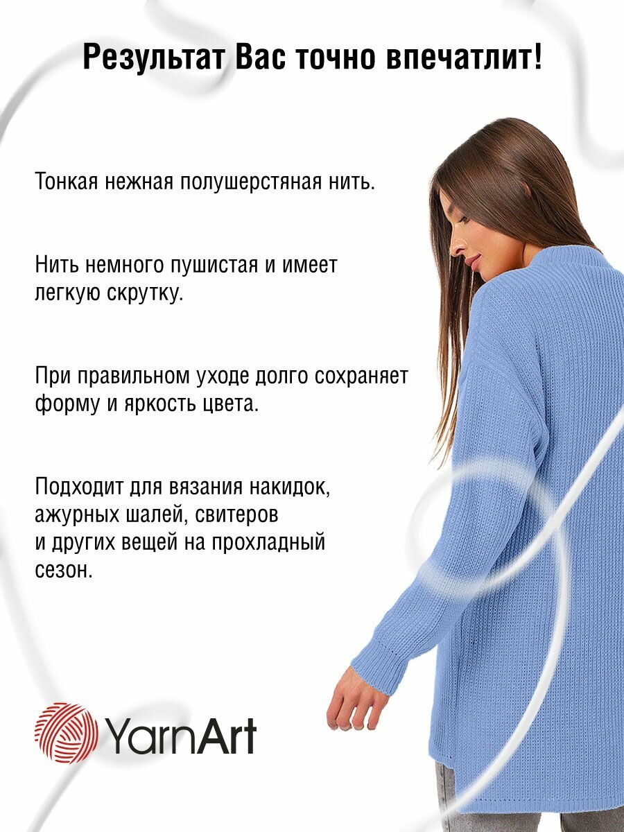 Пряжа для вязания YarnArt 'Angora Star', 100г, 500м (20% тонкая шерсть, 80% акрил) (3072 голубой джинс), 5 мотков
