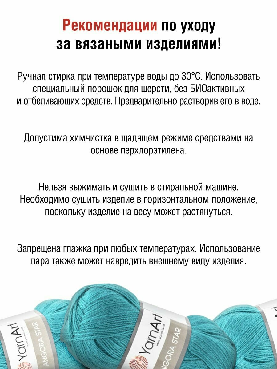СохранитьПряжа для вязания YarnArt 'Angora Star' 100гр 500м (20% тонкая шерсть, 80% акрил) (11448 яркая бирюза), 5 мотков интересное:
