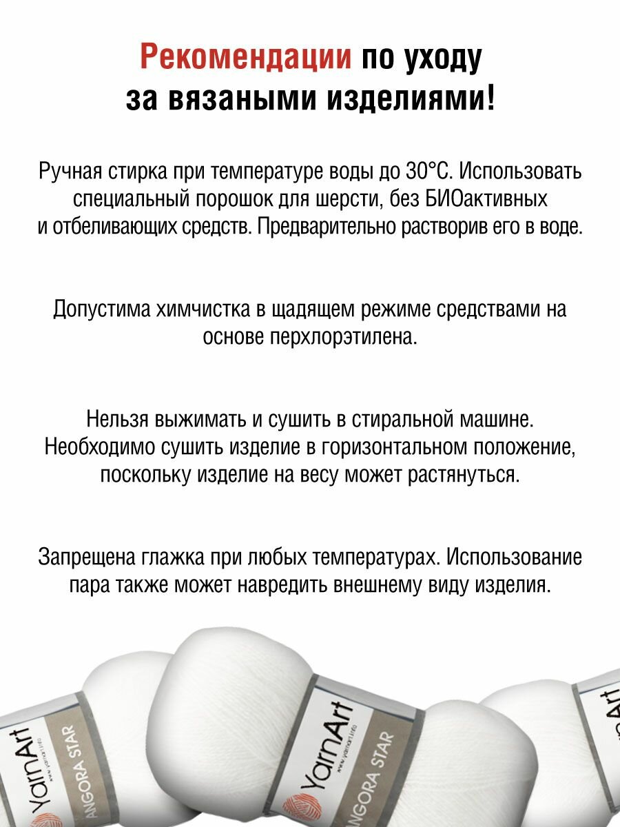 СохранитьПряжа для вязания YarnArt 'Angora Star' 100гр 500м (20% тонкая шерсть, 80% акрил) (501 белый), 5 мотков интересное: