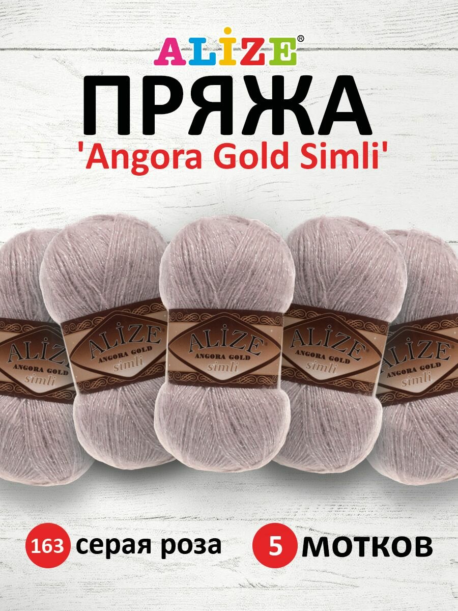 Купить Пряжа для вязания ALIZE 'Angora Gold Simli', 100г, 500м (20% шерсть, 5% металлик, 75% акрил) (163 серая роза), 5 мотков
