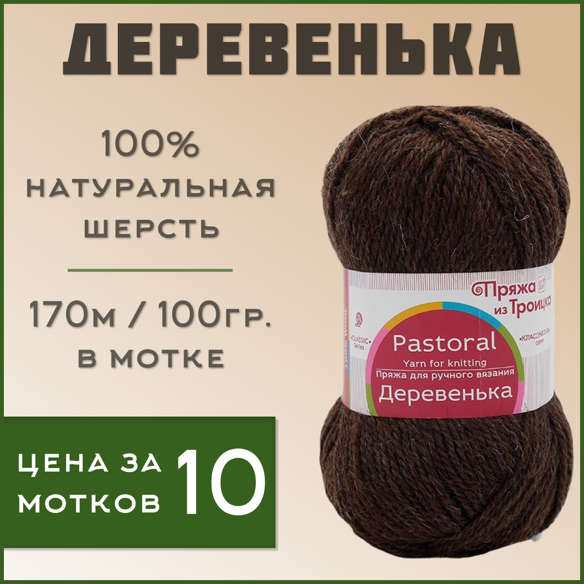 Пряжа для вязания крючком спицами Пряжа из Троицка Деревенька средняя шерсть 100%, цвет 251 коричневый 10 шт. по 100 г, 170 м