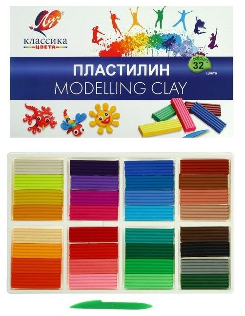 Пластилин Луч Классика со стеком 640г 32цв 31С 2065-08