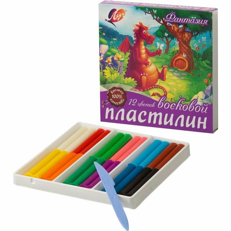 Пластилин восковой ЛУЧ "Фантазия", 12 цветов, 180 г, со стеком, картонная упаковка, 25С1523-08