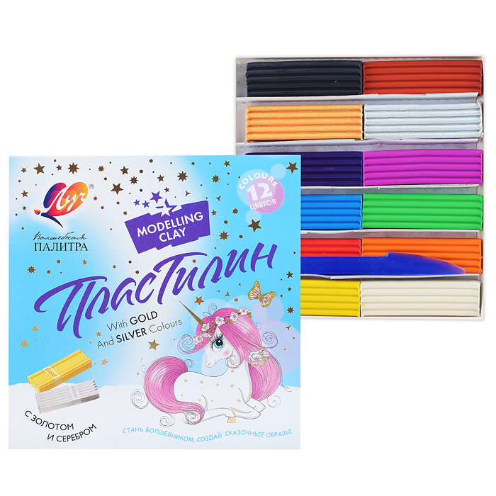Купить Пластилин 12цв 240г "Волшебная палитра" +золотой/серебряный стек карт упак е/п ЛУЧ 30C 1942-08 040909
