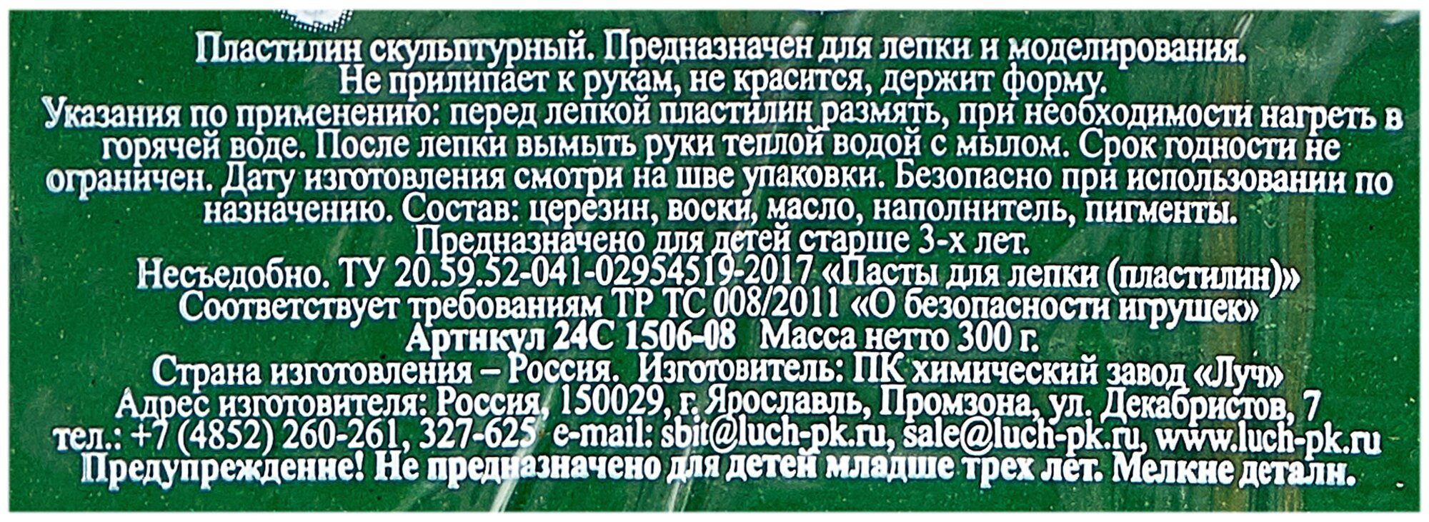 Пластилин скульптурный 300г оливковый 24с ЛУЧ 1506-08 040425