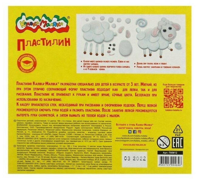 Ниже Вы можете прочитать отзывы на Пластилин 12 цветов 180 г "Каляка-Маляка", со стеком, ознакомится с подробными характеристиками, посмотреть интересные обзоры и фотографии на Пластилин 12 цветов 180 г "Каляка-Маляка", со стеком.