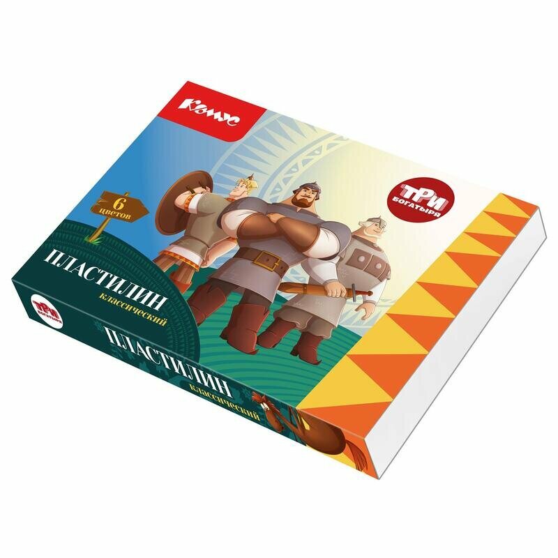 Купить Пластилин 6 цветов Комус Три богатыря, 120г, со стеком (1845519)