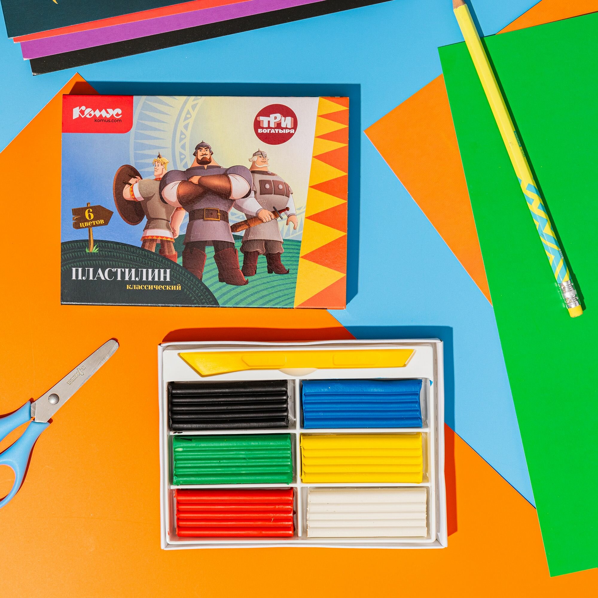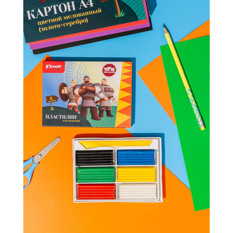 Пластилин 6 цветов Комус Три богатыря, 120г, со стеком (1845519) интересное: