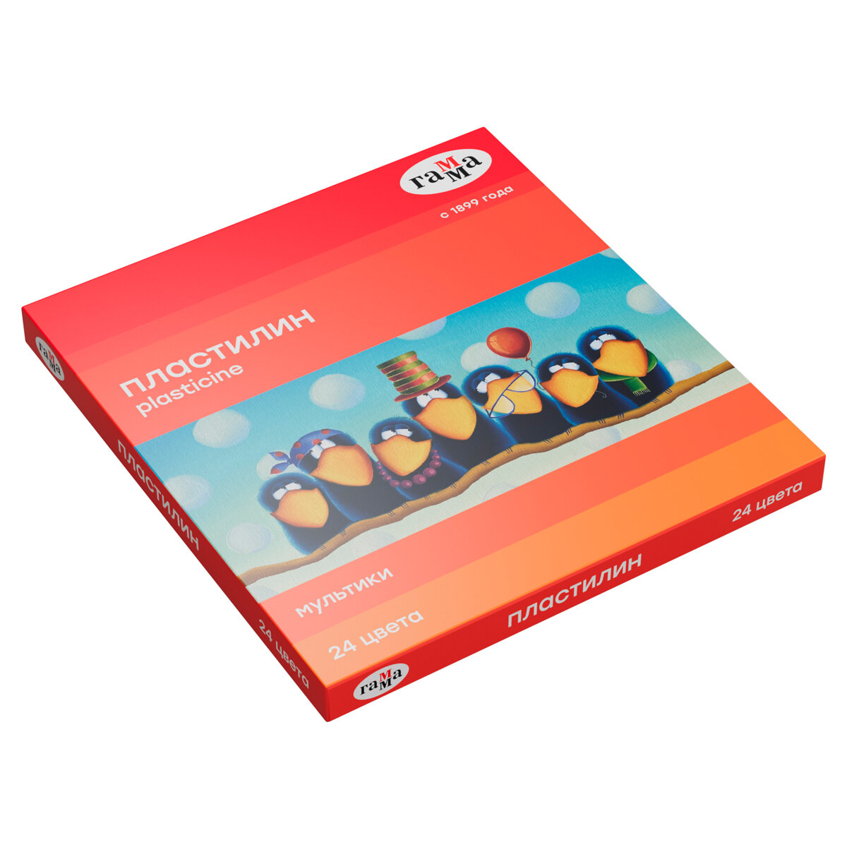 Пластилин 24 цвета Гамма "Мультики", 480г, со стеком, картонная упаковка (171024)