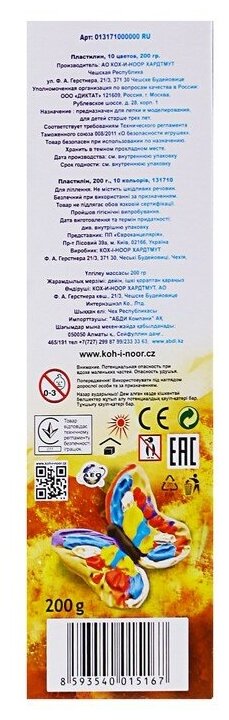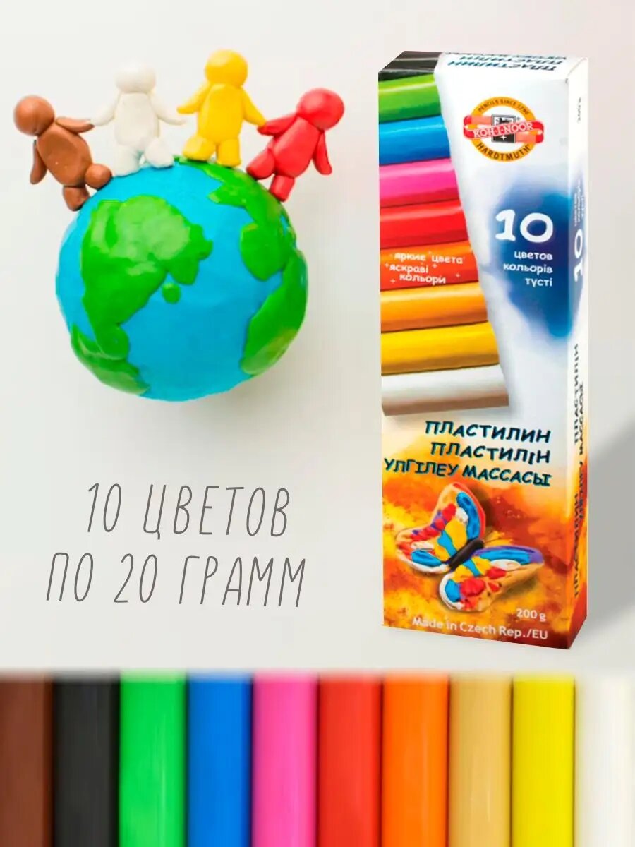 Пластилин KOH-I-NOOR классический "Бабочка" 10 цветов, 200 гр (013171000000RU) интересное: