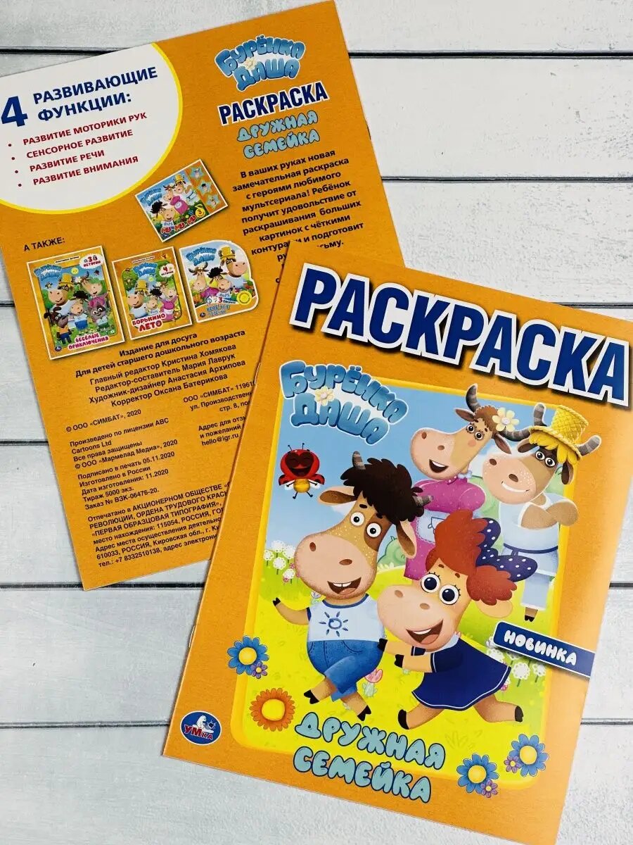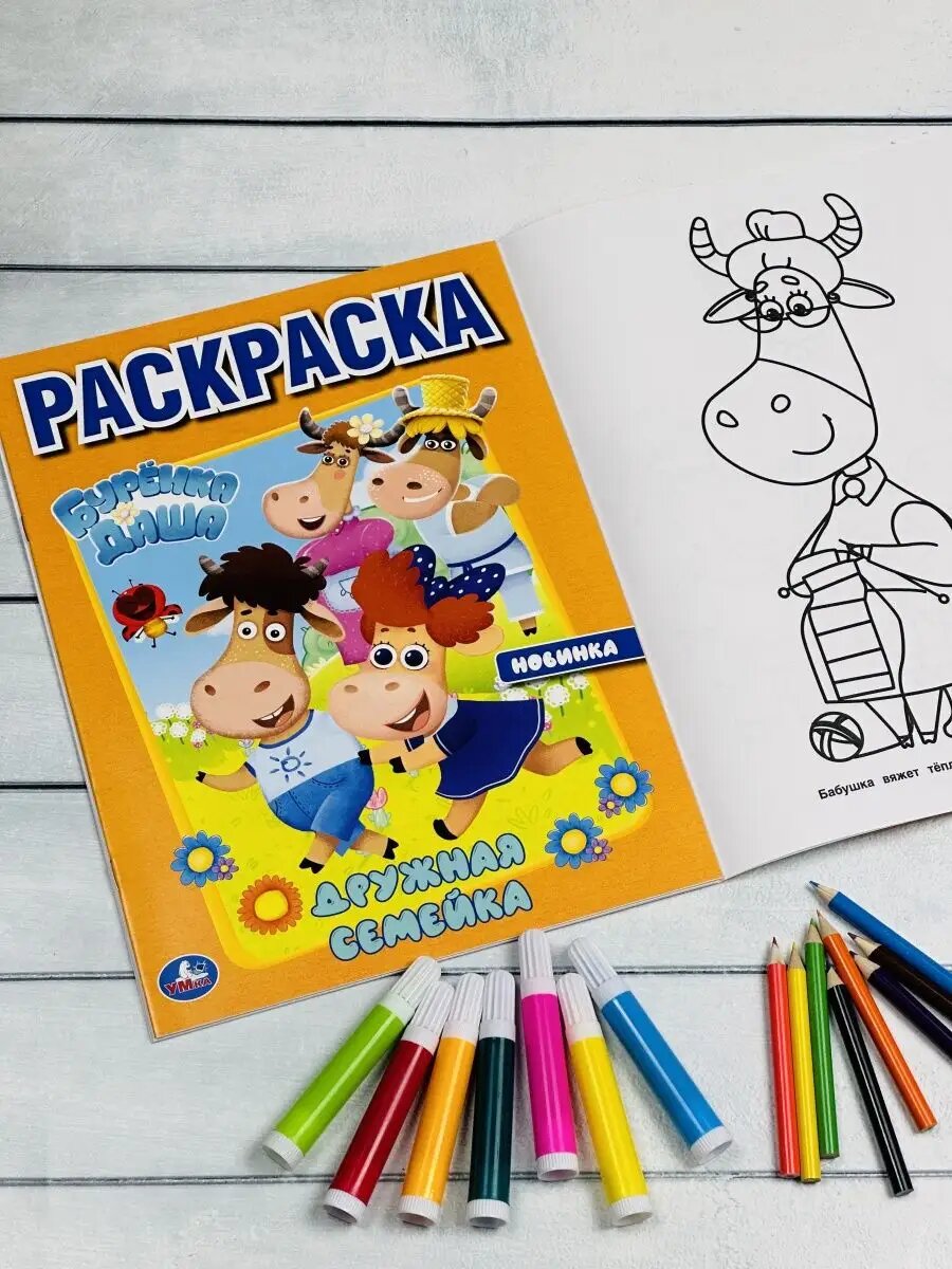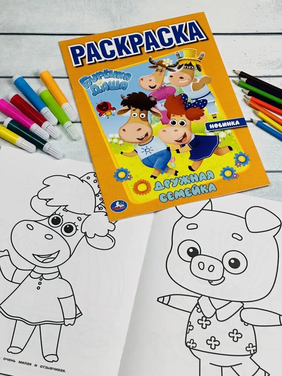 Купить Разукраска Буренка Даша Дружная семейка герои из мультика