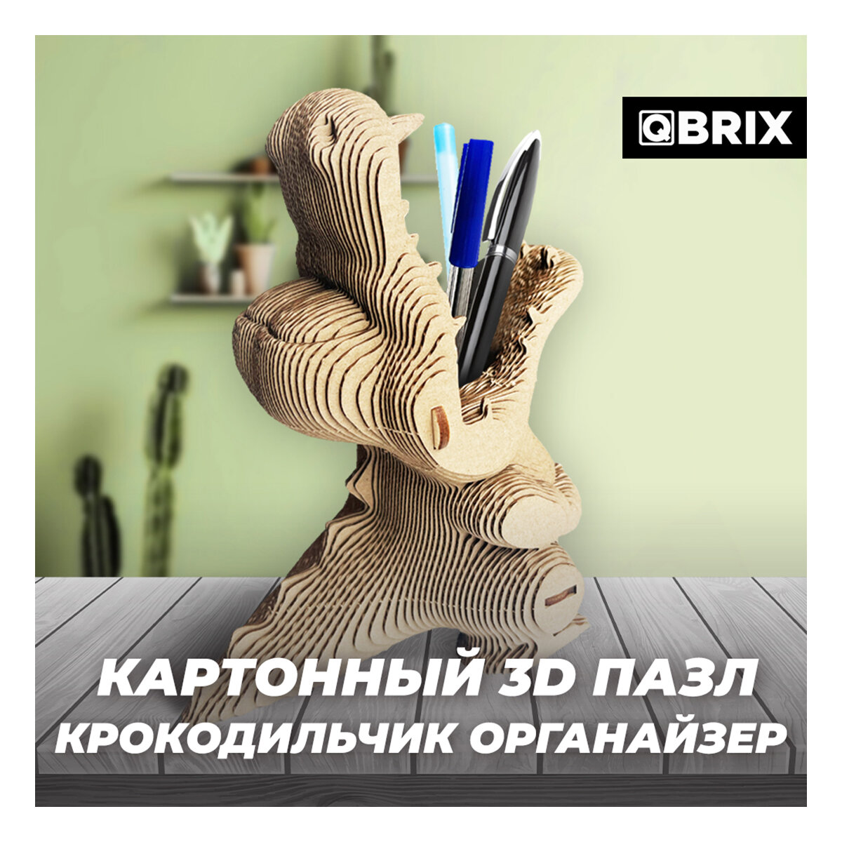 QBRIX Картонный 3D конструктор Крокодильчик органайзер, 79 деталей интересное: