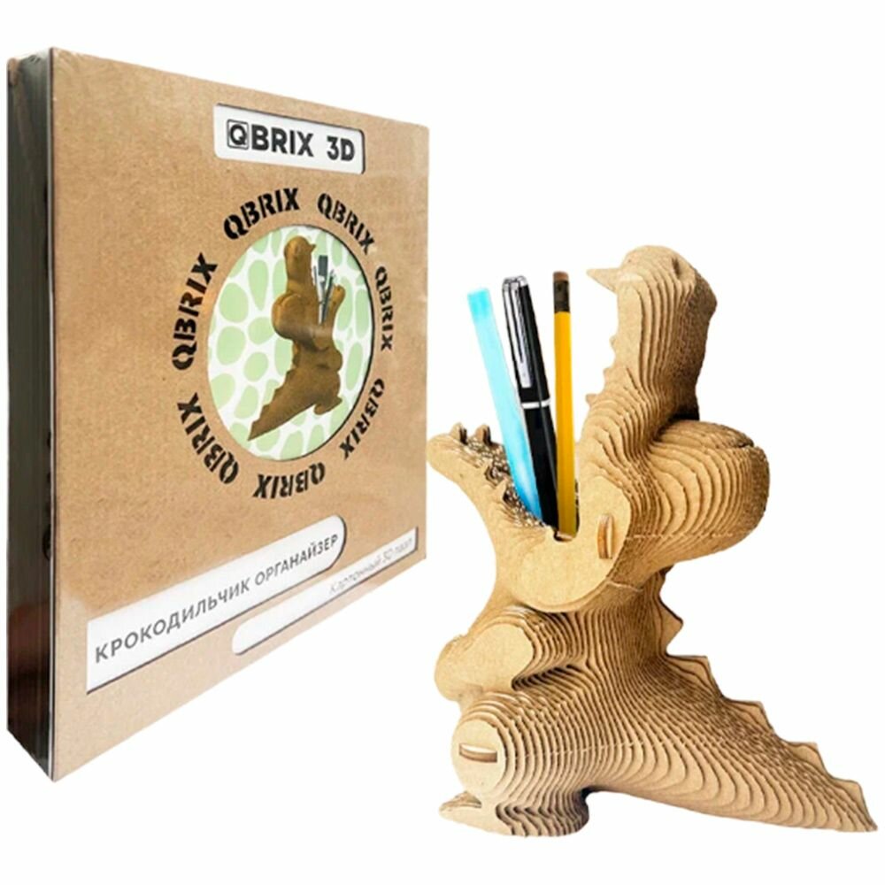 QBRIX Картонный 3D конструктор Крокодильчик органайзер 20037