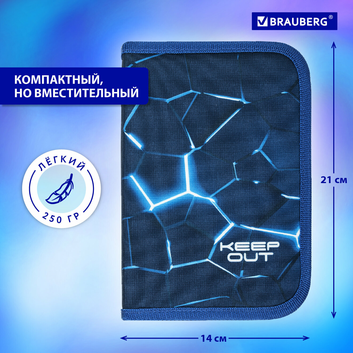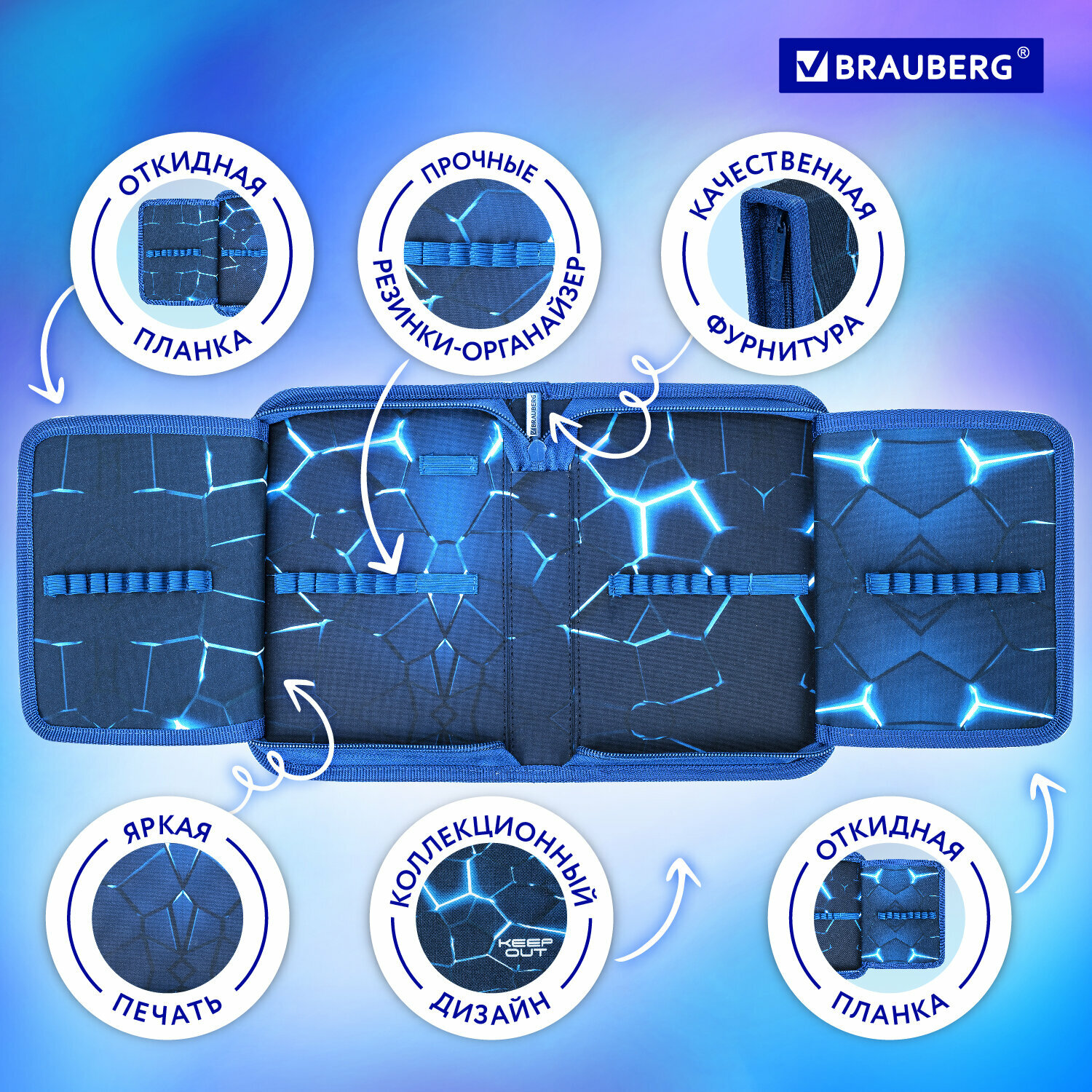 Пенал-футляр школьный для ручек и карандашей Brauberg, 1 отделение, полиэстер, органайзер, Alienation, 271586