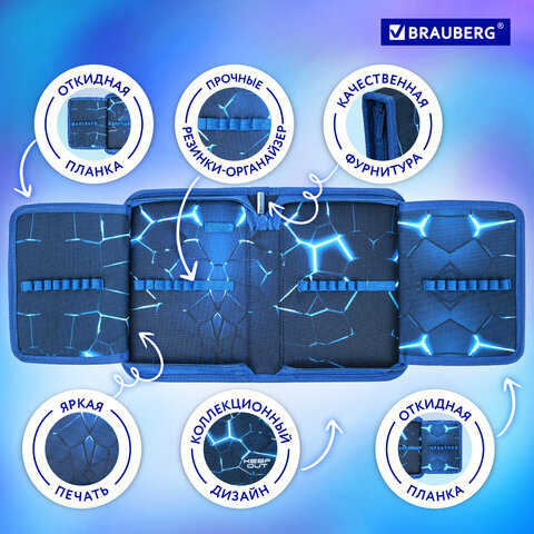 Купить Пенал Brauberg, 1 отделение, 2 откидные планки, полиэстер, 21х14 см, Digital lava, 272320