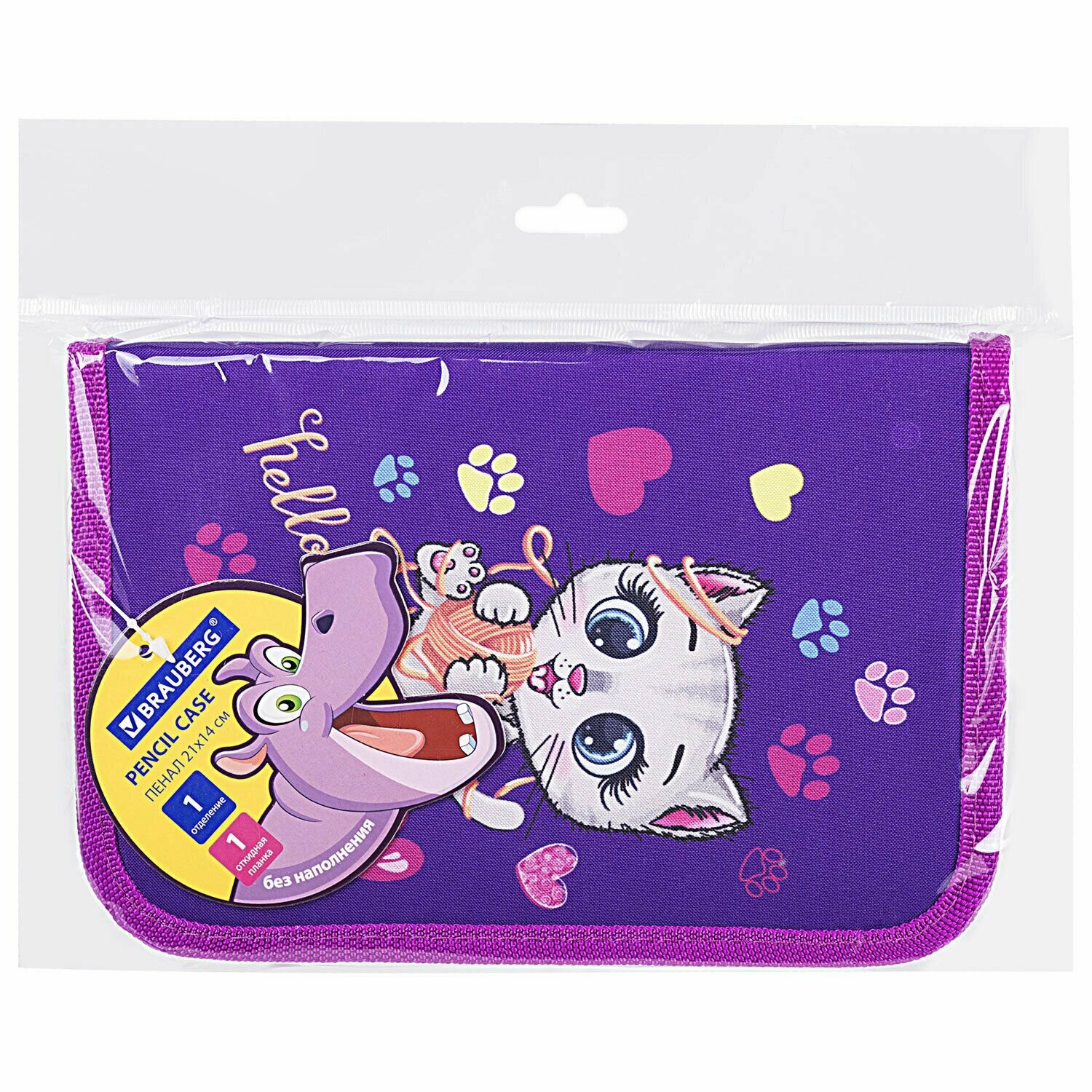 Пенал BRAUBERG, 1 отделение, 1 откидная планка, полиэстер, 21х14 см, Playing kitty, 271521
