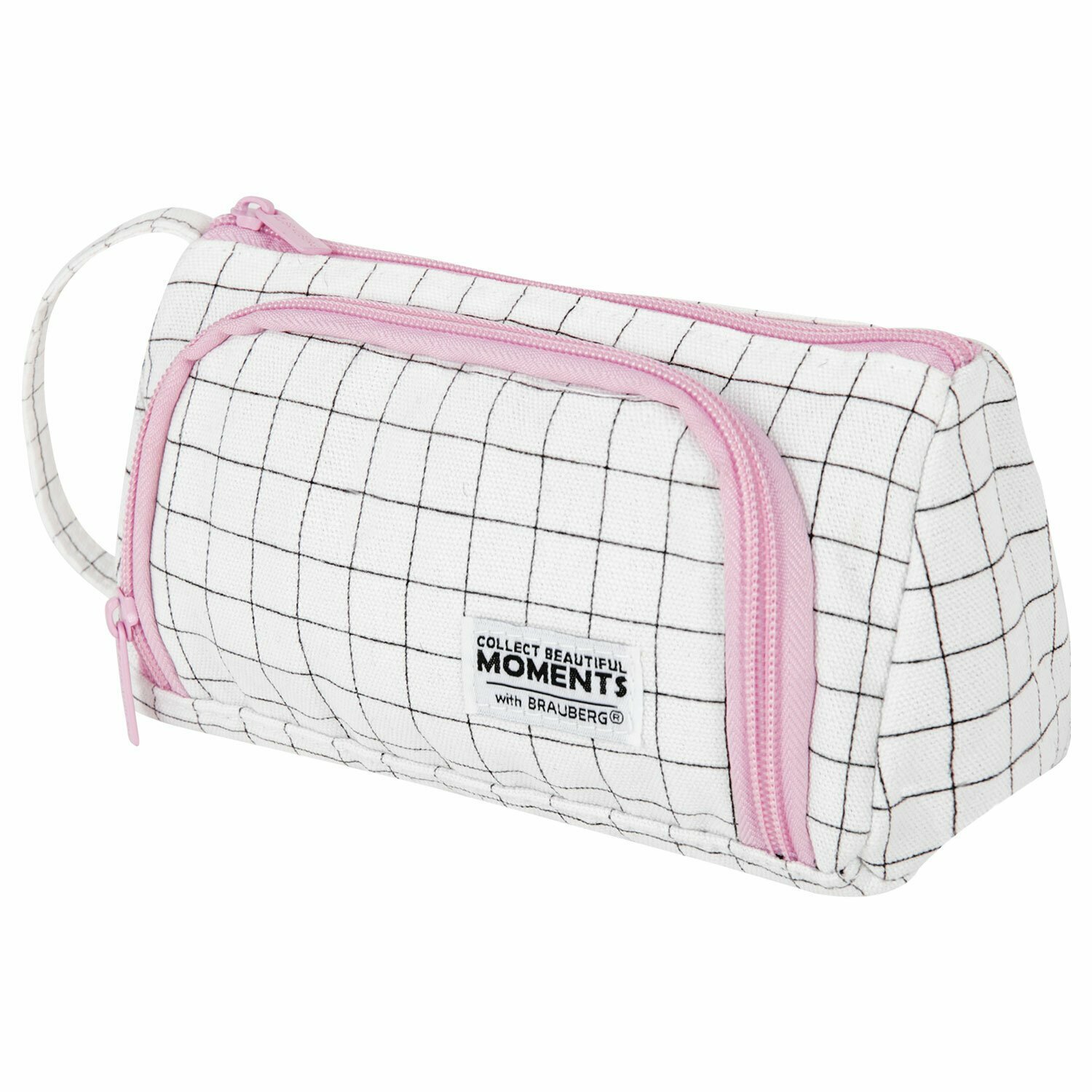 Пенал-косметичка BRAUBERG с ручкой, 1 откидная планка, полиэстер, 22x10х8 см, "Checkered white"