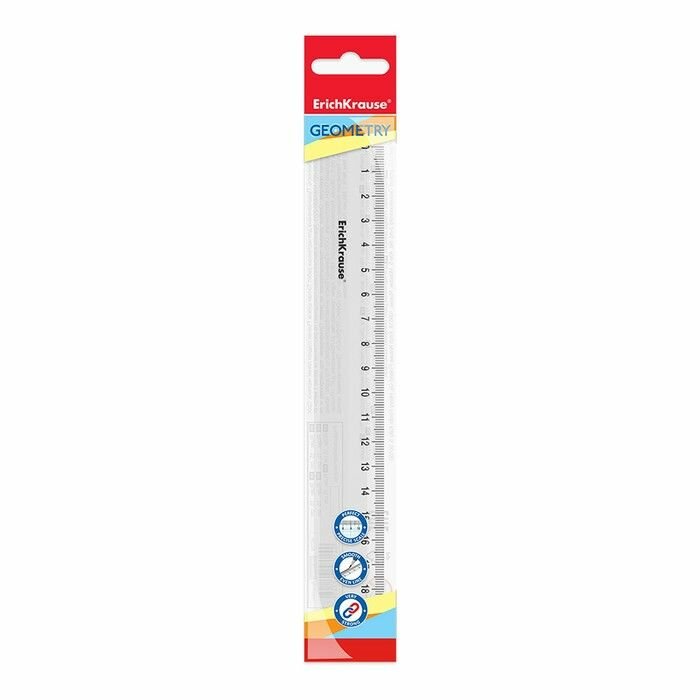 Линейка пластиковая ErichKrause Clear, 20см, прозрачный, в флоупаке интересное: