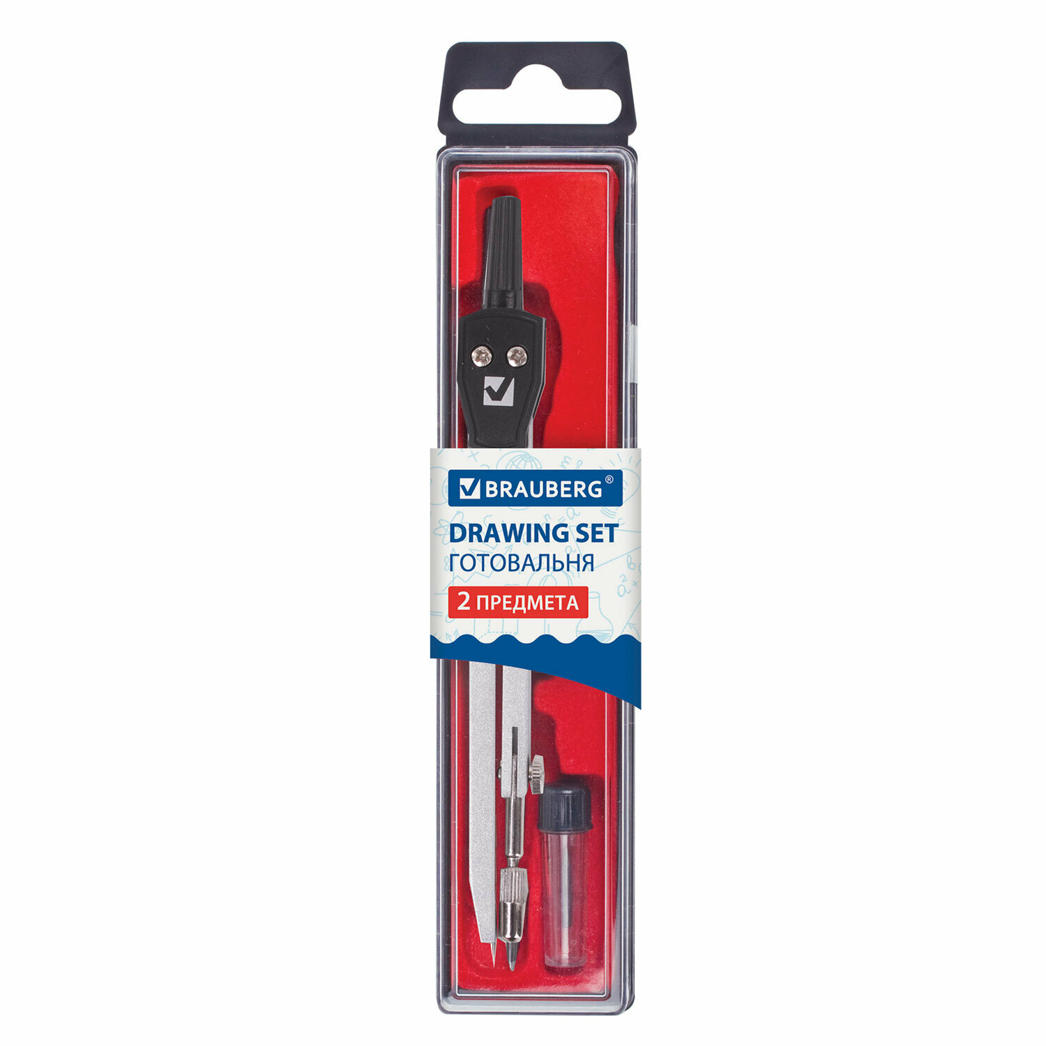 Комплект 24 шт, Готовальня BRAUBERG "Architect", 2 предмета: циркуль 135 мм, грифель, пенал с подвесом, 210321