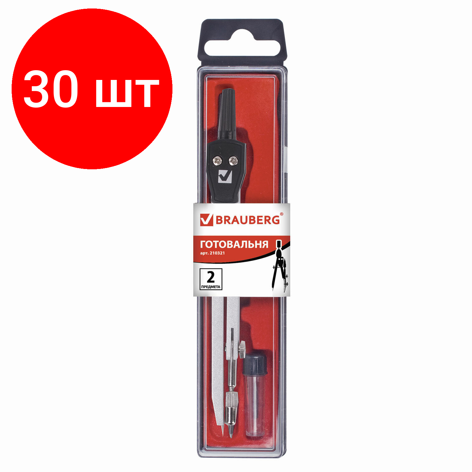 Купить Комплект 30 шт, Готовальня BRAUBERG "Architect", 2 предмета: циркуль 135 мм, грифель, пенал с подвесом, 210321