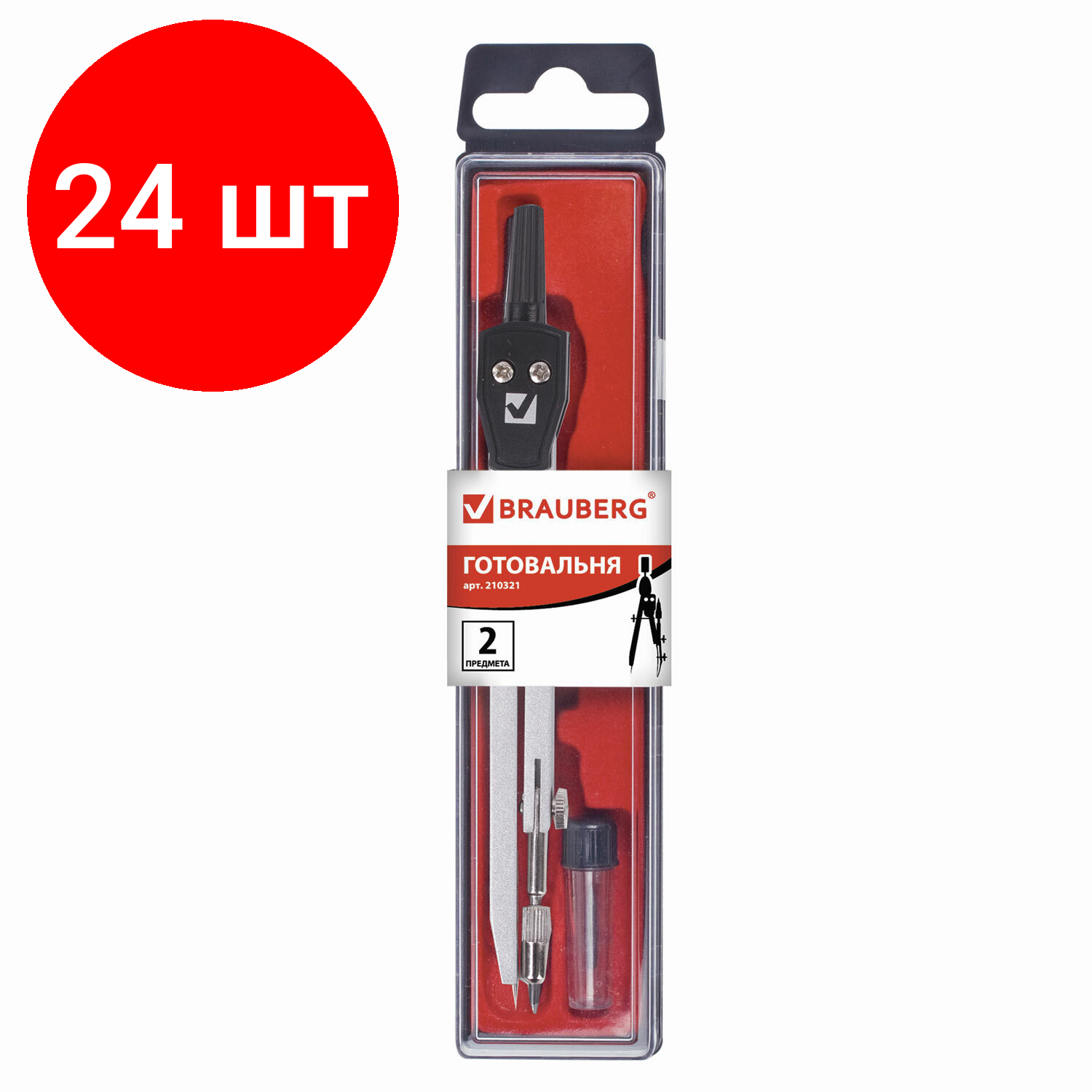Купить Комплект 24 шт, Готовальня BRAUBERG "Architect", 2 предмета: циркуль 135 мм, грифель, пенал с подвесом, 210321