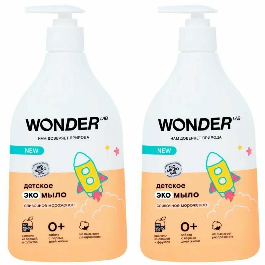 Набор детское жидкое эко мыло WONDER LAB, гипоаллергенное мыло для детей и для новорожденных, с ароматом сливочного мороженого, 540 мл, 2 шт.