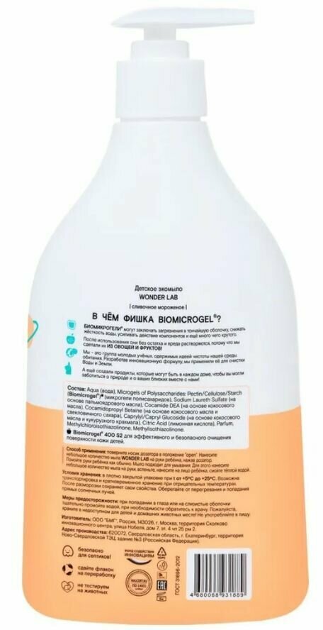 Жидкое мыло WONDER LAB ЭКО Детское с ароматом сливочного мороженого 540 мл