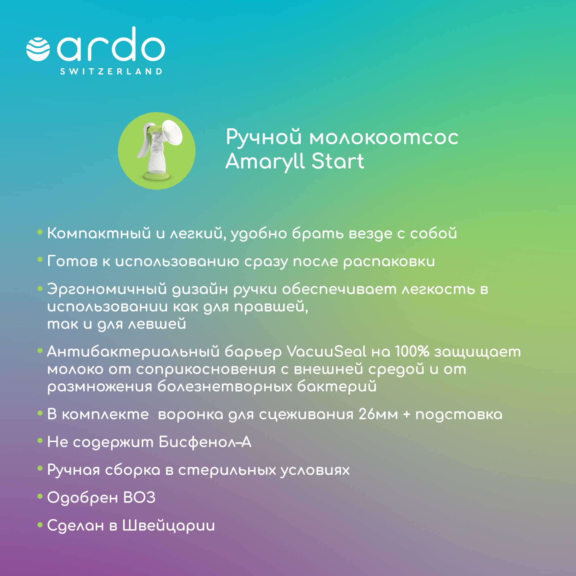 Ручной молокоотсос Ardo Amaryll Start (базовая комплектация) интересное: