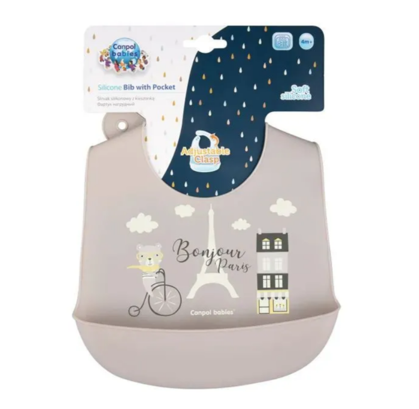 babies Bonjour Paris силиконовый с карманом Бежевый