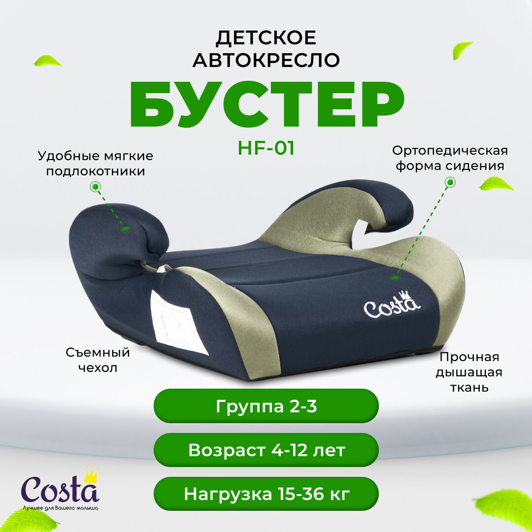 Купить Детское автокресло бустер Costa HF-01, группа 2 и 3, от 4 до 12 лет, вес от 15 до 36 кг, цвет черно-зеленый