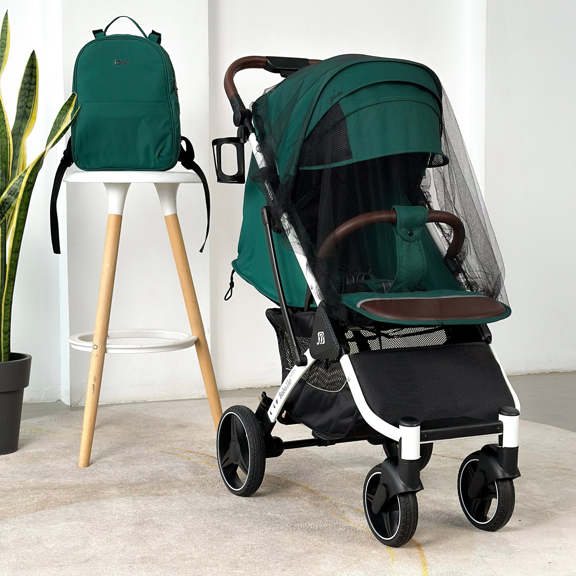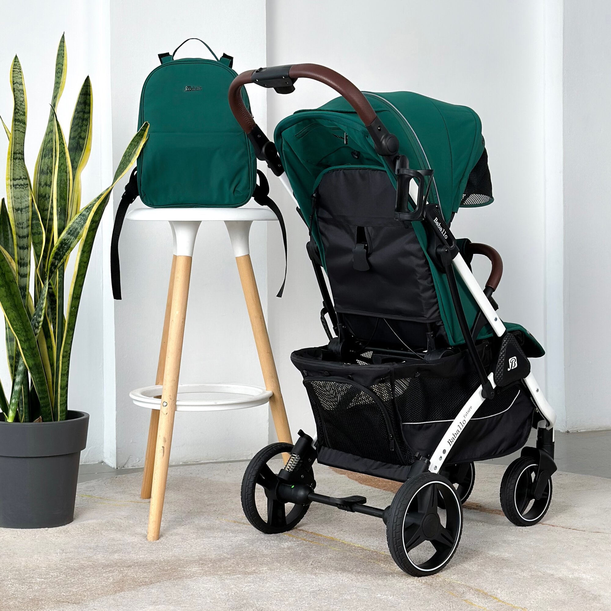 Купить Коляска прогулочная Baballo 2024 ORIGINAL изумруд/белая рама + рюкзак (механическая регулировка спинки)
