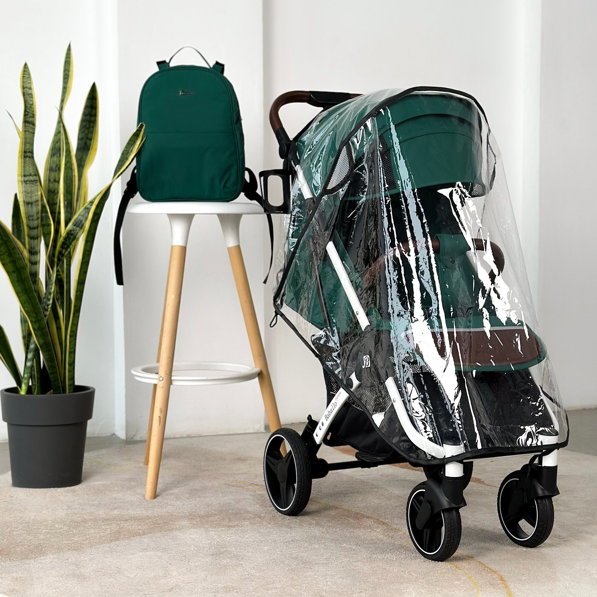 Коляска прогулочная Baballo 2024 ORIGINAL изумруд/черная рама + рюкзак (механическая регулировка спинки)