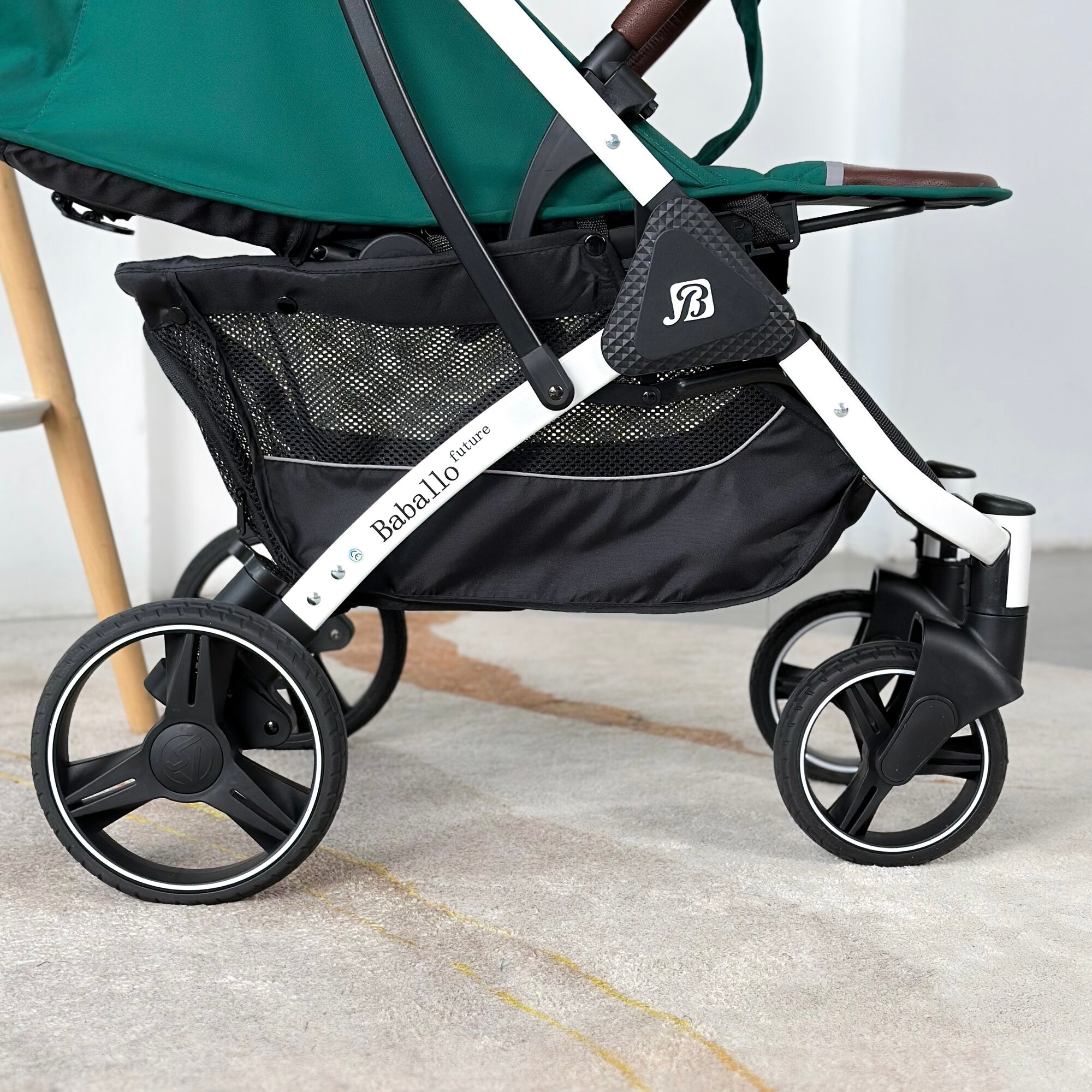 Коляска прогулочная Baballo 2024 всесезонная для путешествий, цвет изумрудный на белой раме
