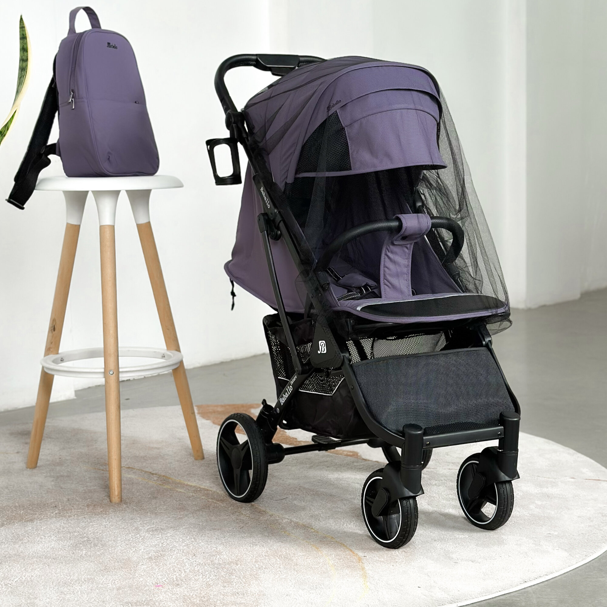 Коляска прогулочная Baballo 2024 ORIGINAL фиолетовая/белая рама + рюкзак (механическая регулировка спинки)