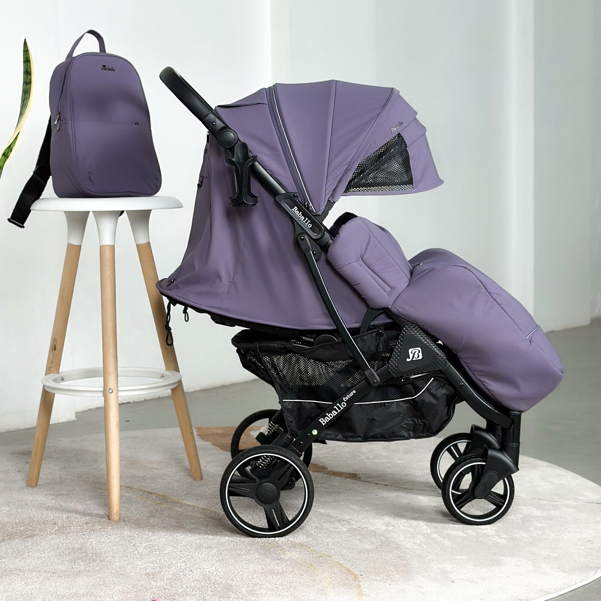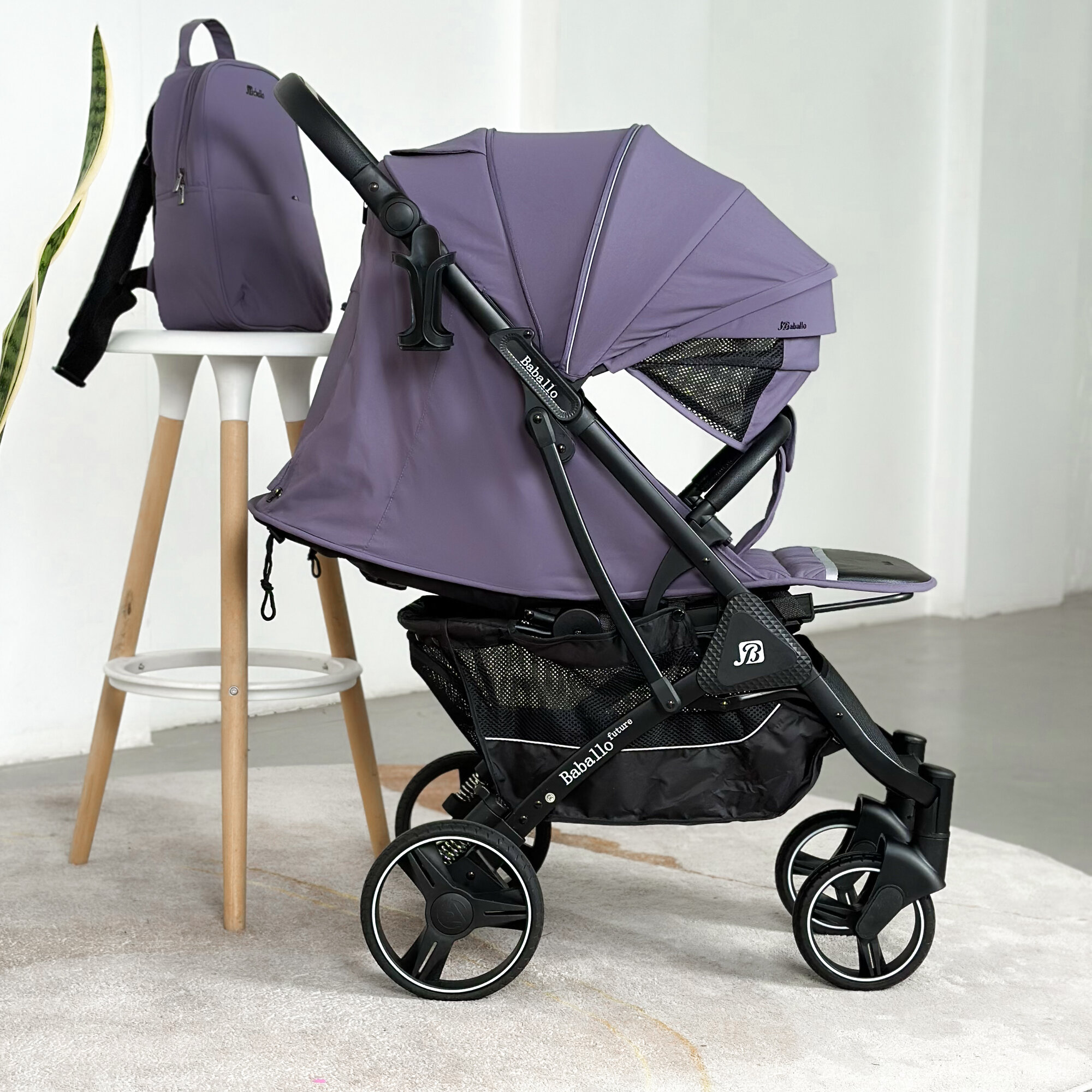 Коляска прогулочная Baballo 2024 фиолетовая/белая рама + рюкзак (механическая регулировка спинки)