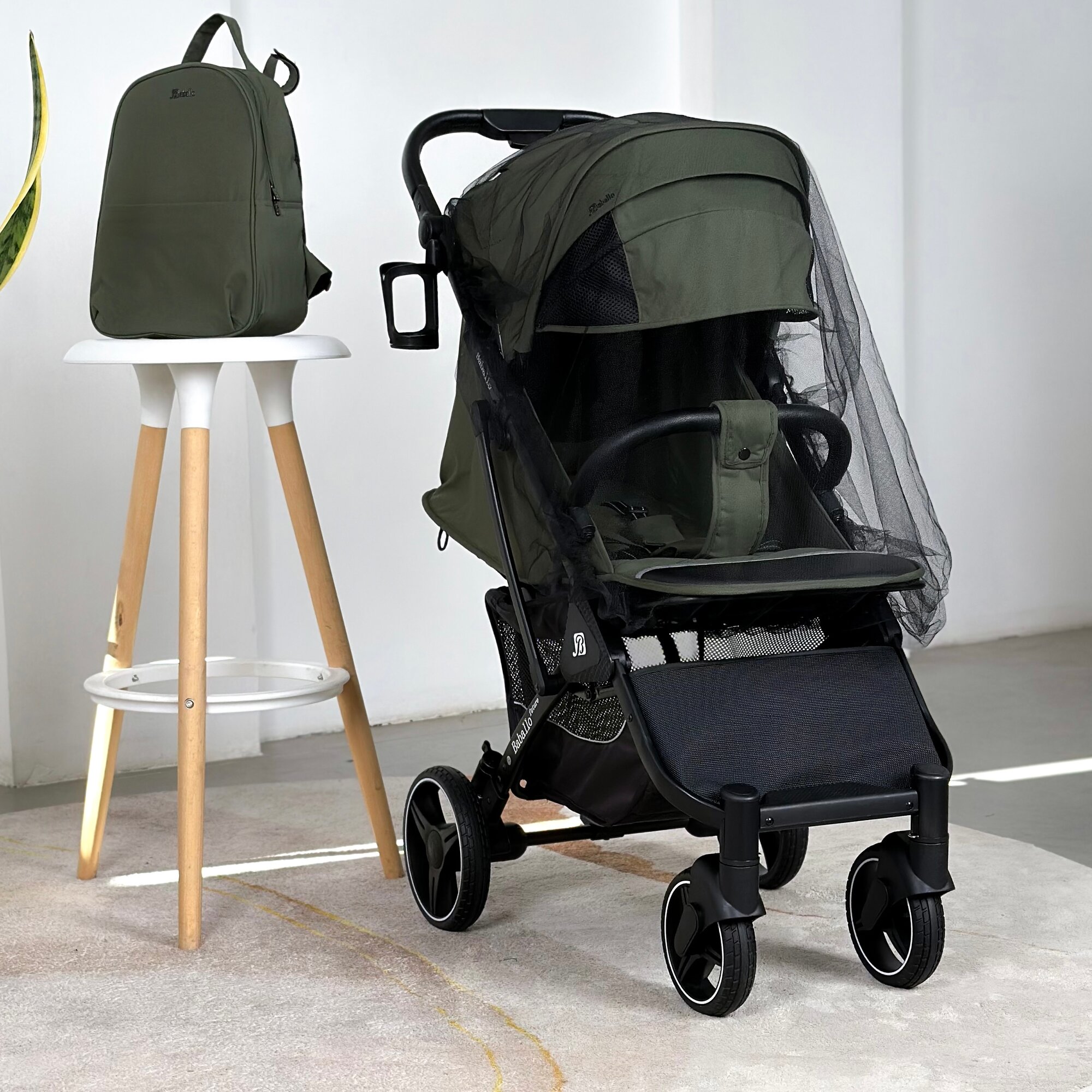 Коляска прогулочная Baballo 2024 армейская/белая рама + рюкзак (механическая регулировка спинки)