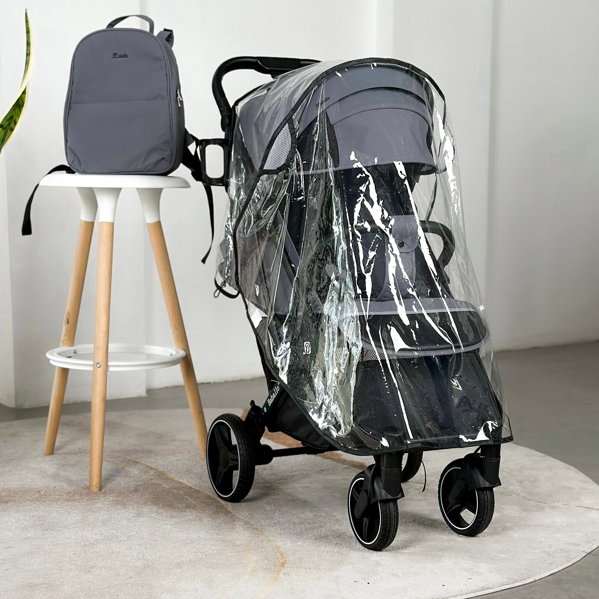 Коляска прогулочная Baballo 2024 снег на сером + рюкзак (механическая регулировка спинки)