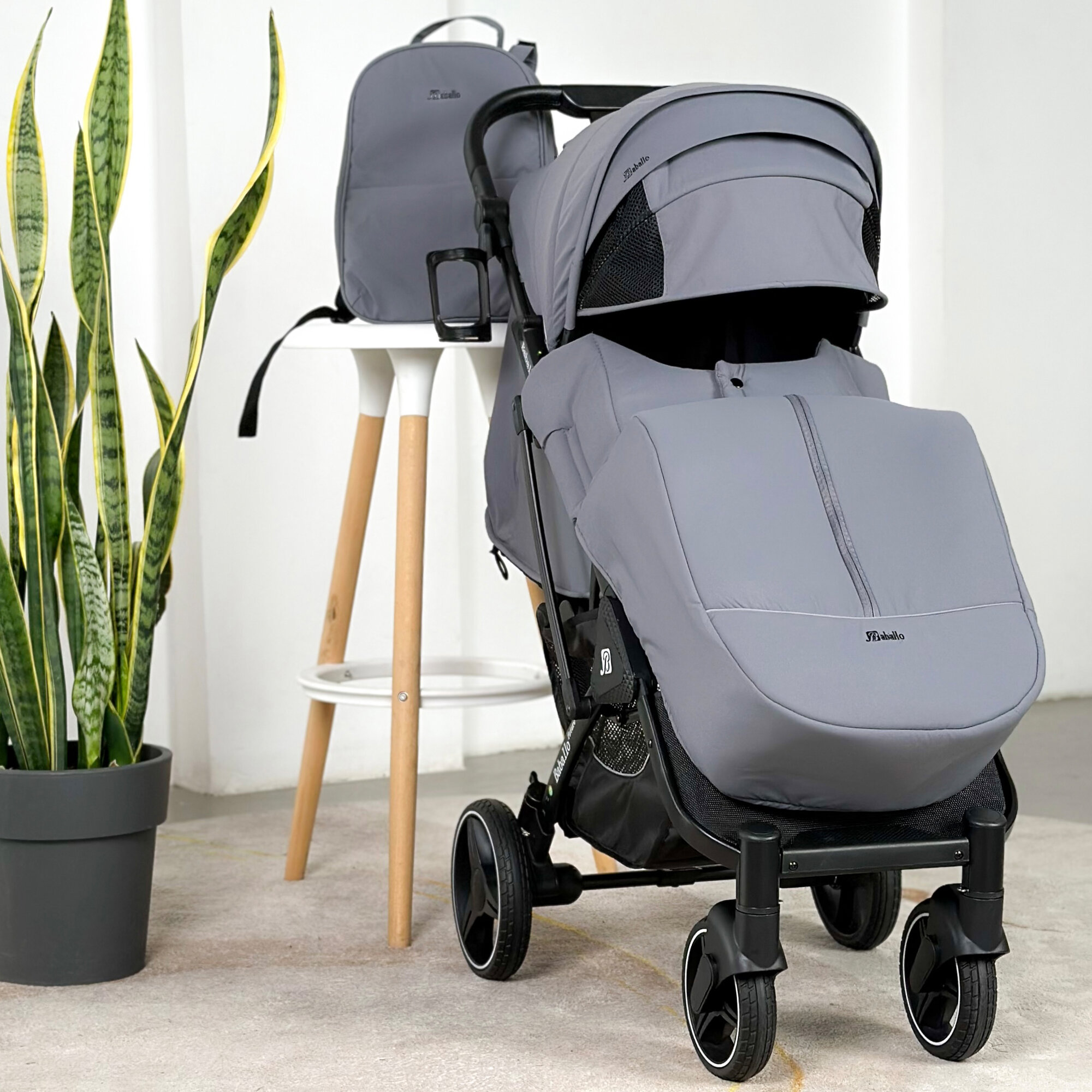 Коляска прогулочная Baballo 2024 всесезонная для путешествий, цвет серый на белой раме