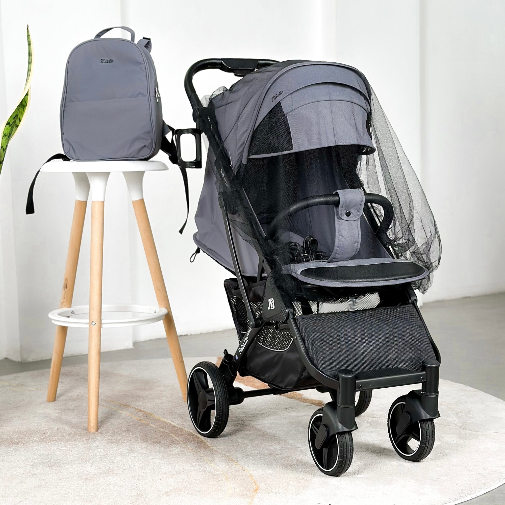 Коляска прогулочная Baballo 2024 ORIGINAL серая/белая рама + рюкзак (механическая регулировка спинки)