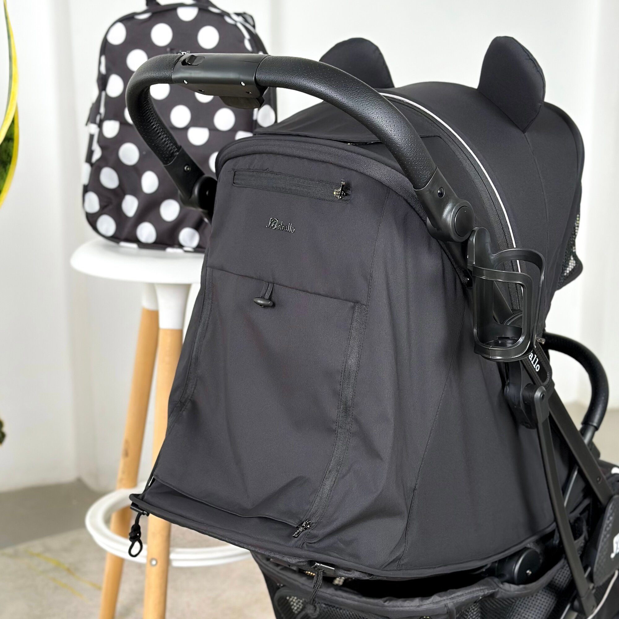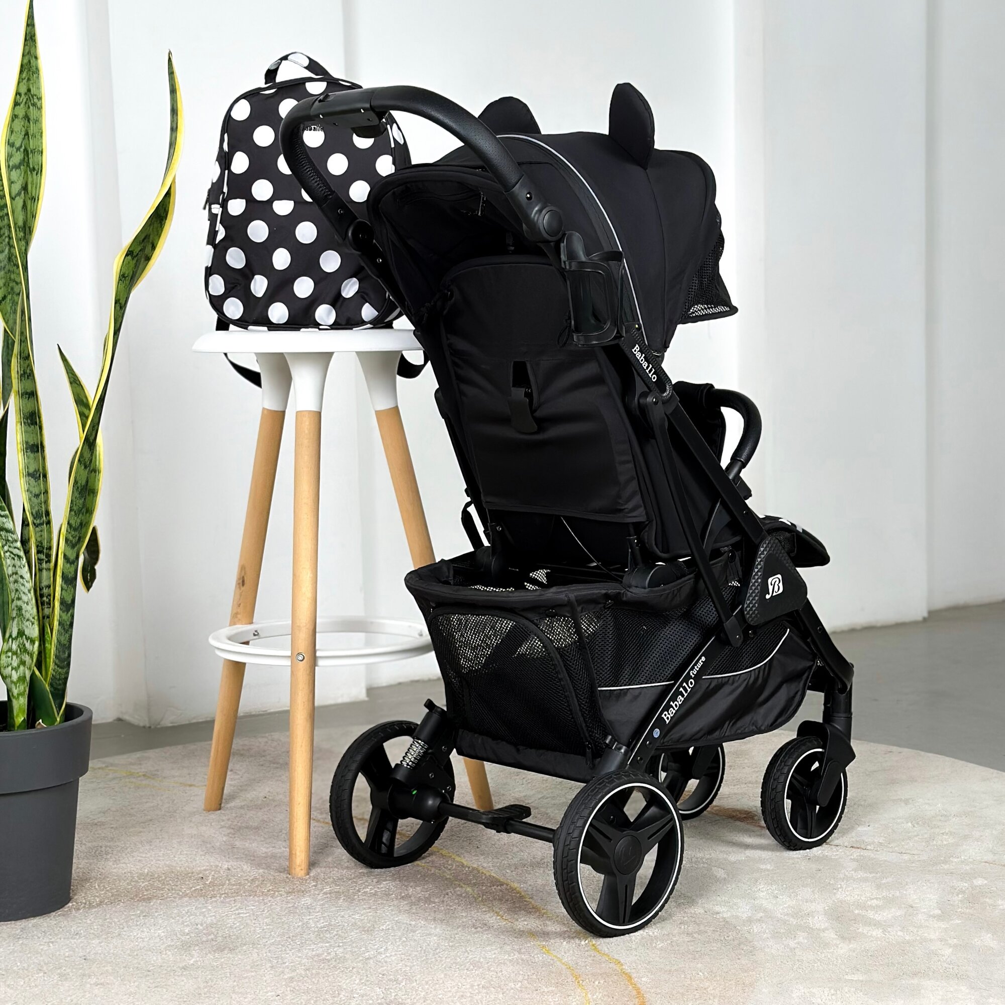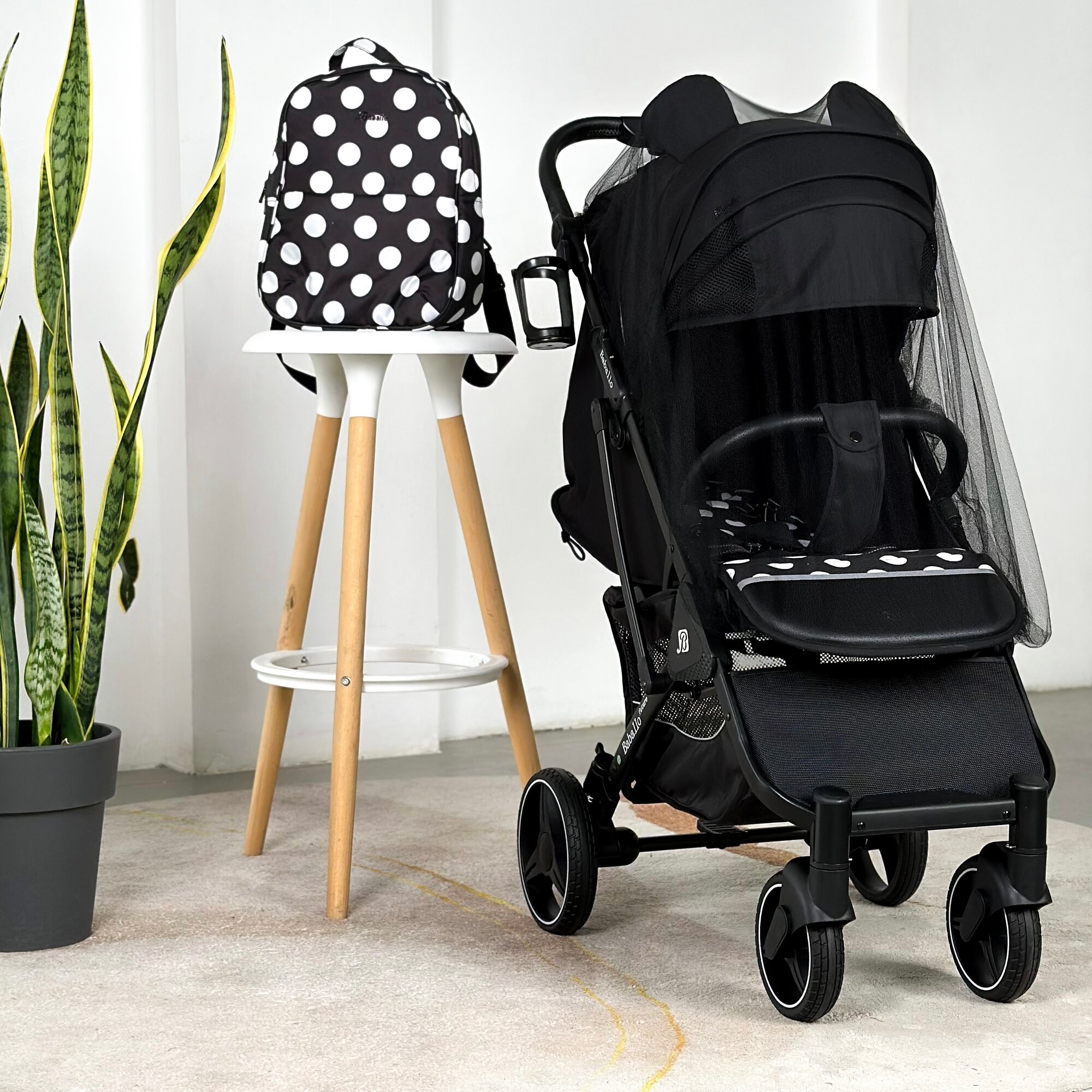 Коляска прогулочная Baballo 2024 черная/белая рама + рюкзак (механическая регулировка спинки)