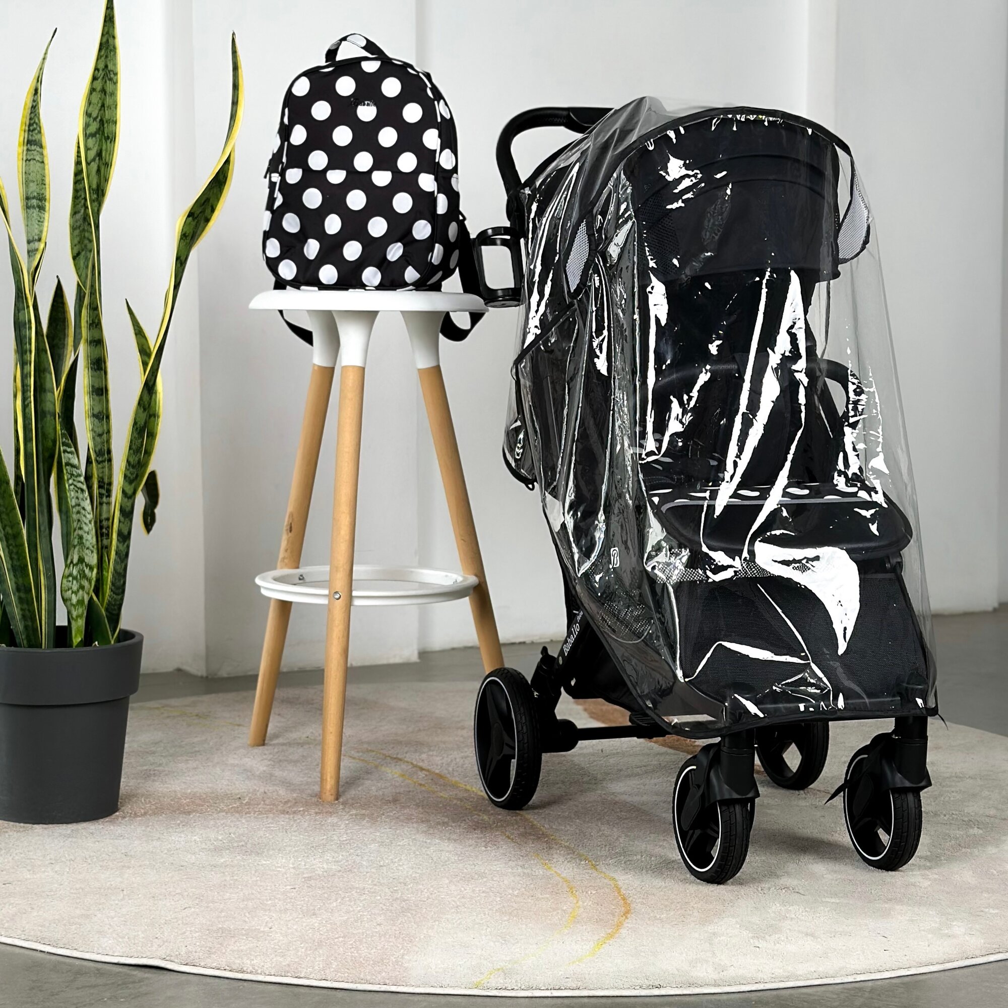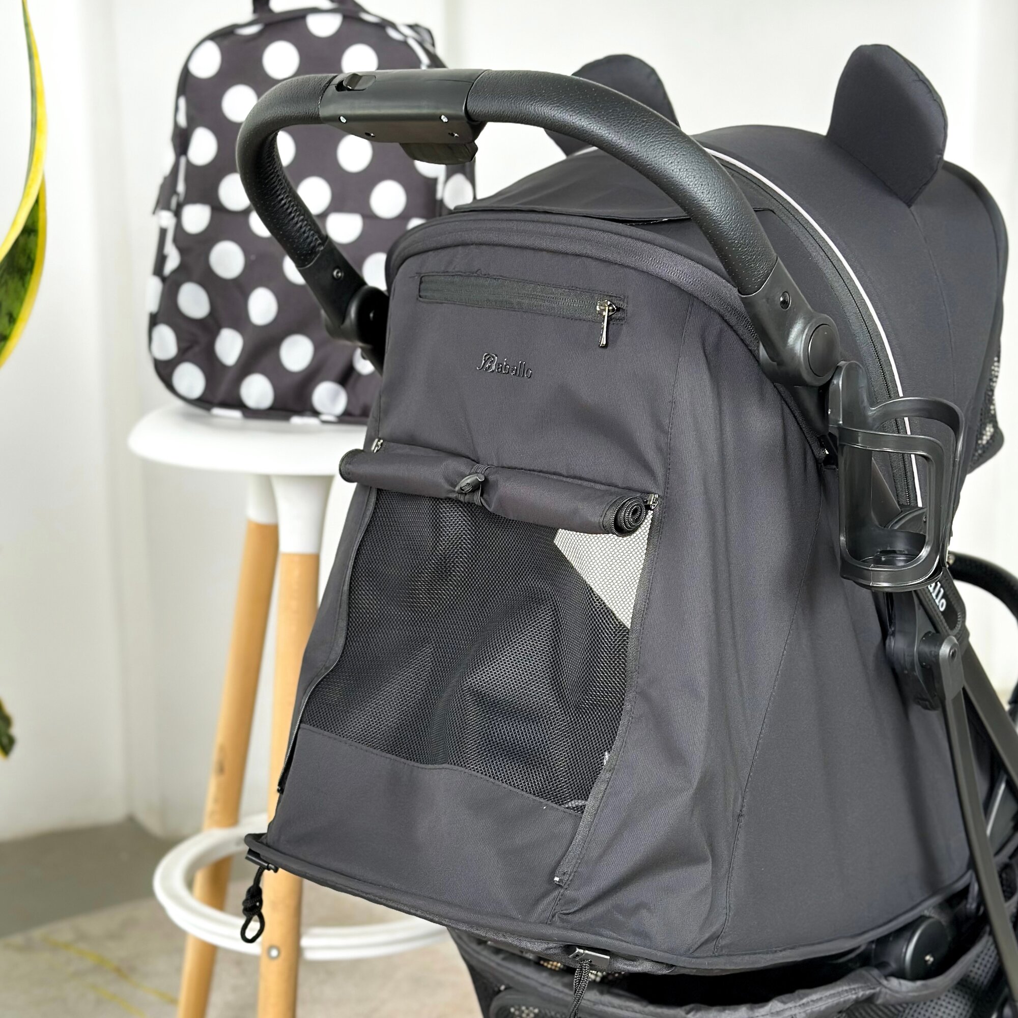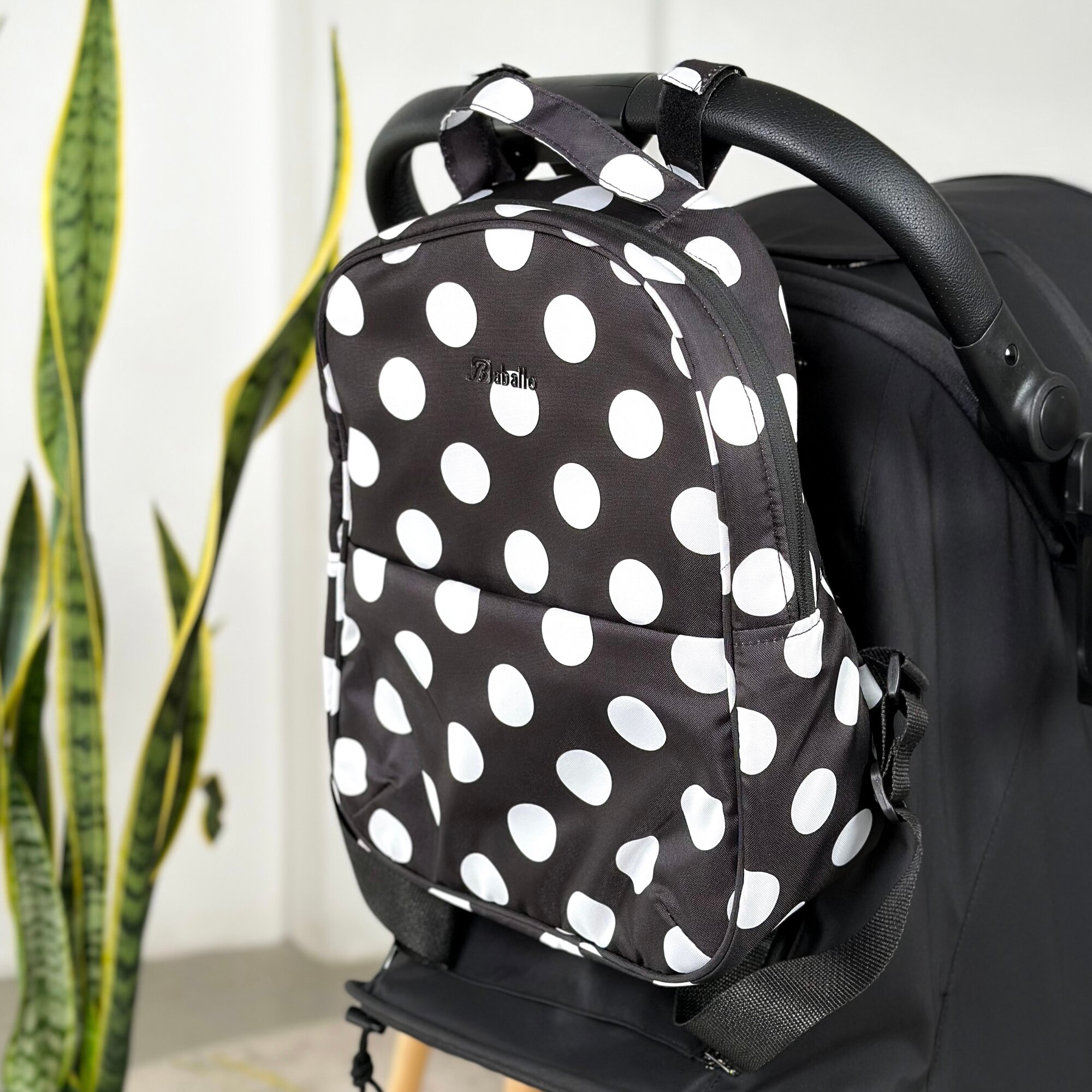 Коляска прогулочная Baballo 2024 черная/белая рама + рюкзак (механическая регулировка спинки)