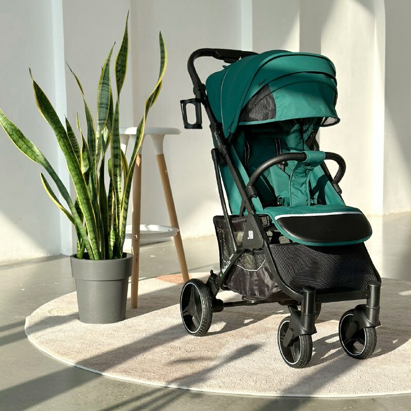 Коляска прогулочная Baballo 2024 всесезонная для путешествий, цвет изумрудный на черной раме