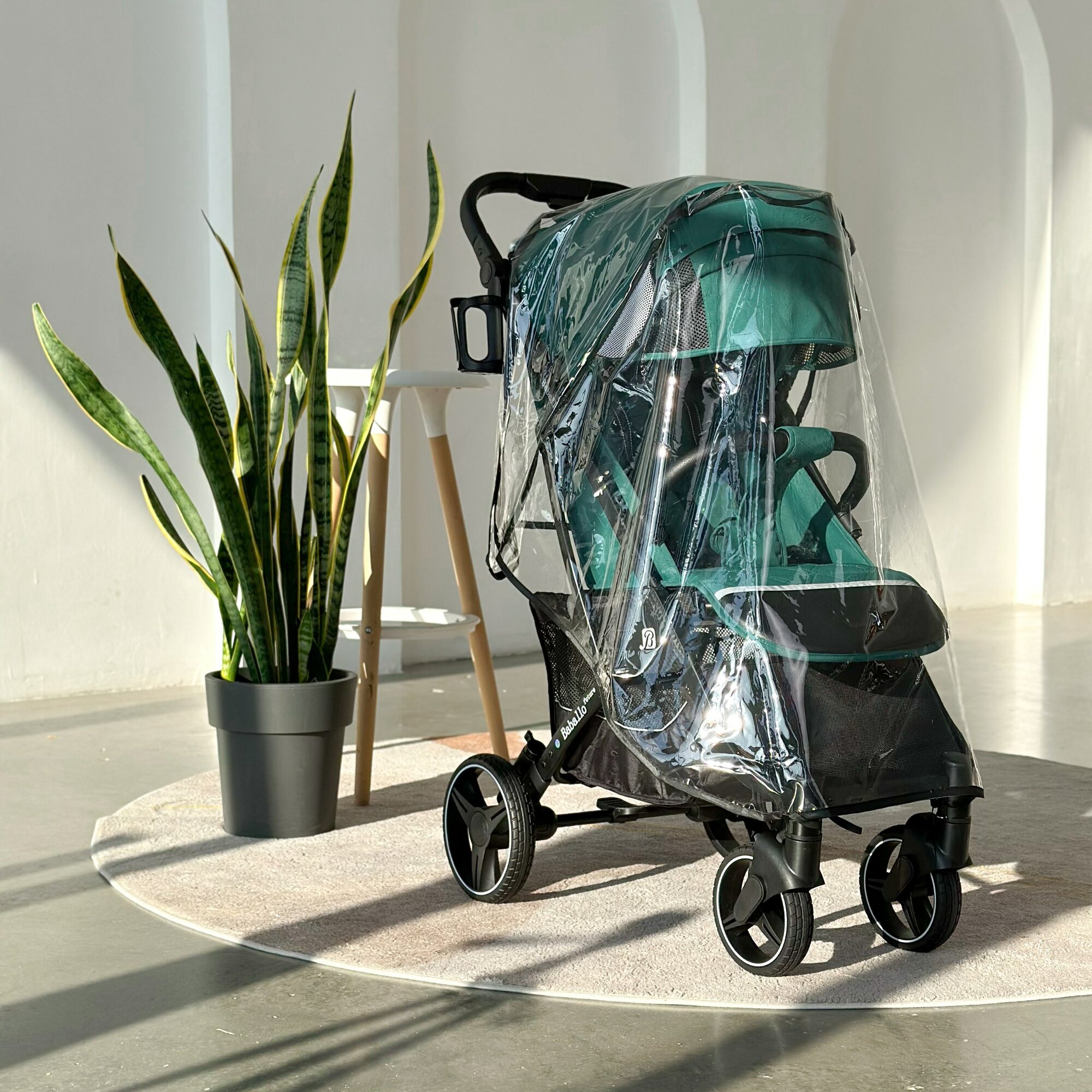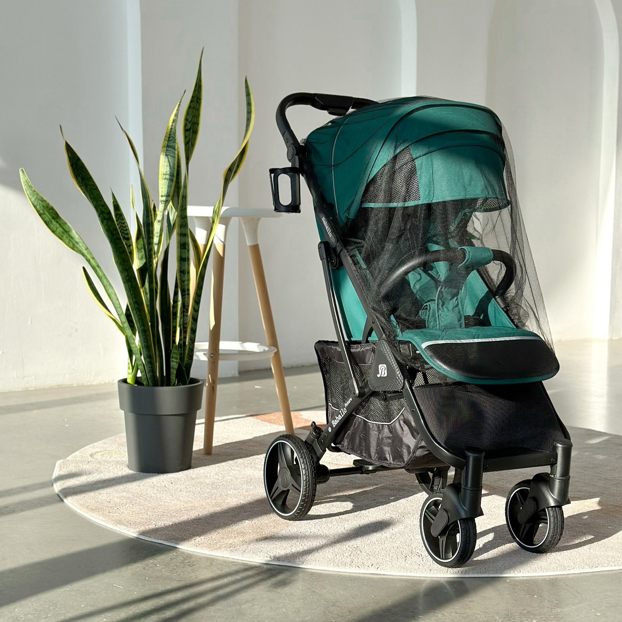 Коляска прогулочная Baballo 2024 всесезонная для путешествий, цвет изумрудный на белой раме