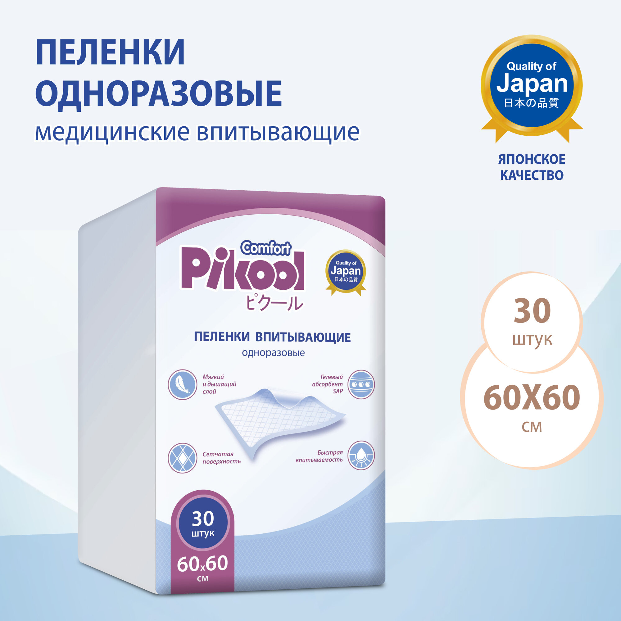 Пеленки одноразовые впитывающие Pikool, 60х60 см 30 шт. интересное: