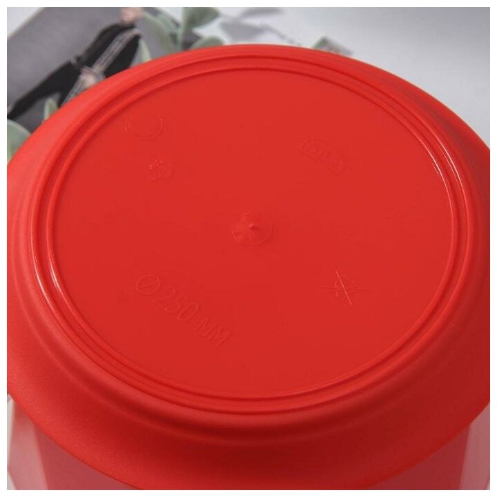 Кашпо для цветов и растений пластик 4,7 литров d=220 мм 'Призма' с поддоном красный