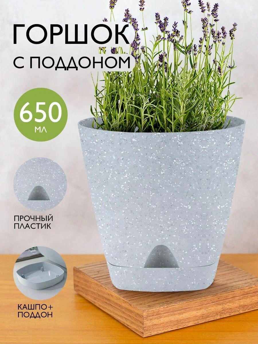 Купить Горшок для растений и цветов с поддоном 0,65 л, светлый камень