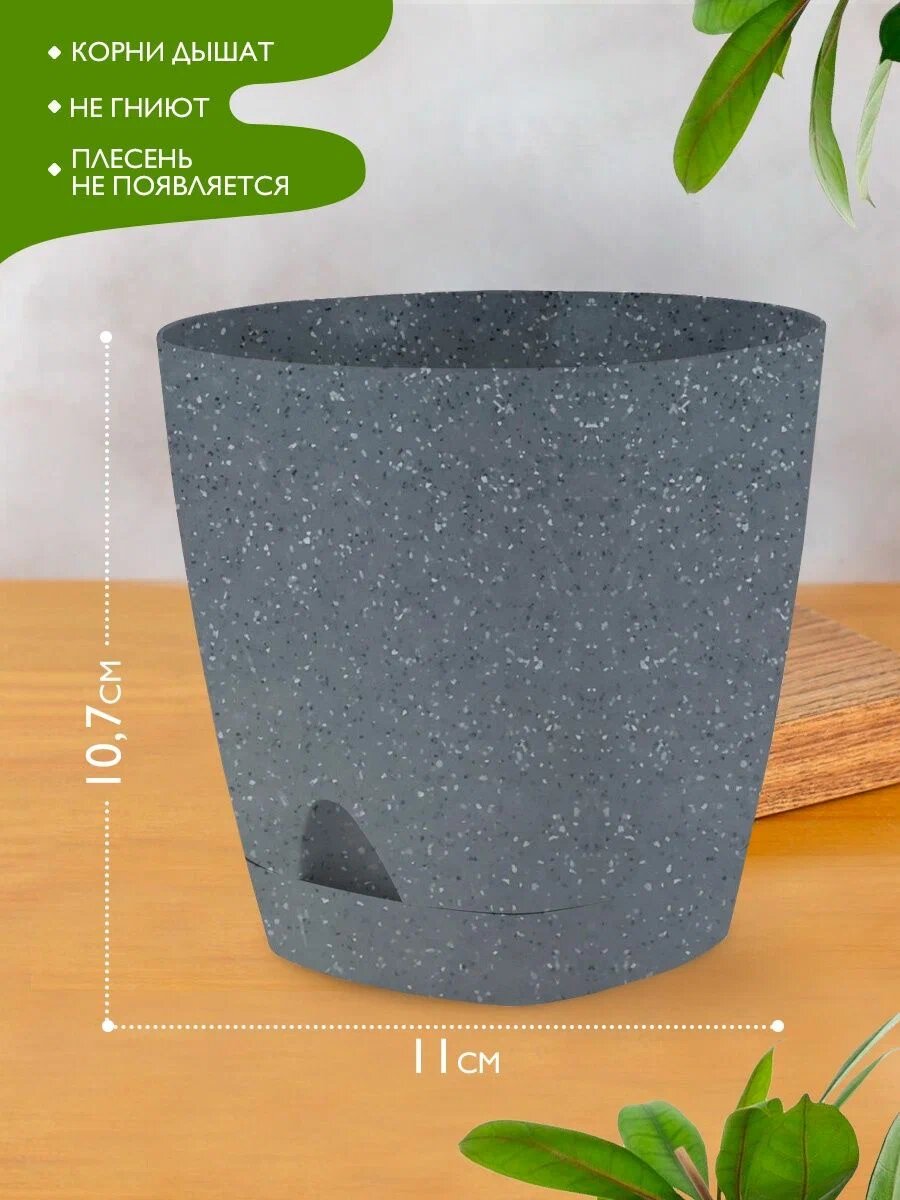 Горшок для цветов с прикорневым поливом InGreen коллекция Amsterdam, пластиковый, 0,65л, 110мм, 110х110х107 (IG6298) Темный камень