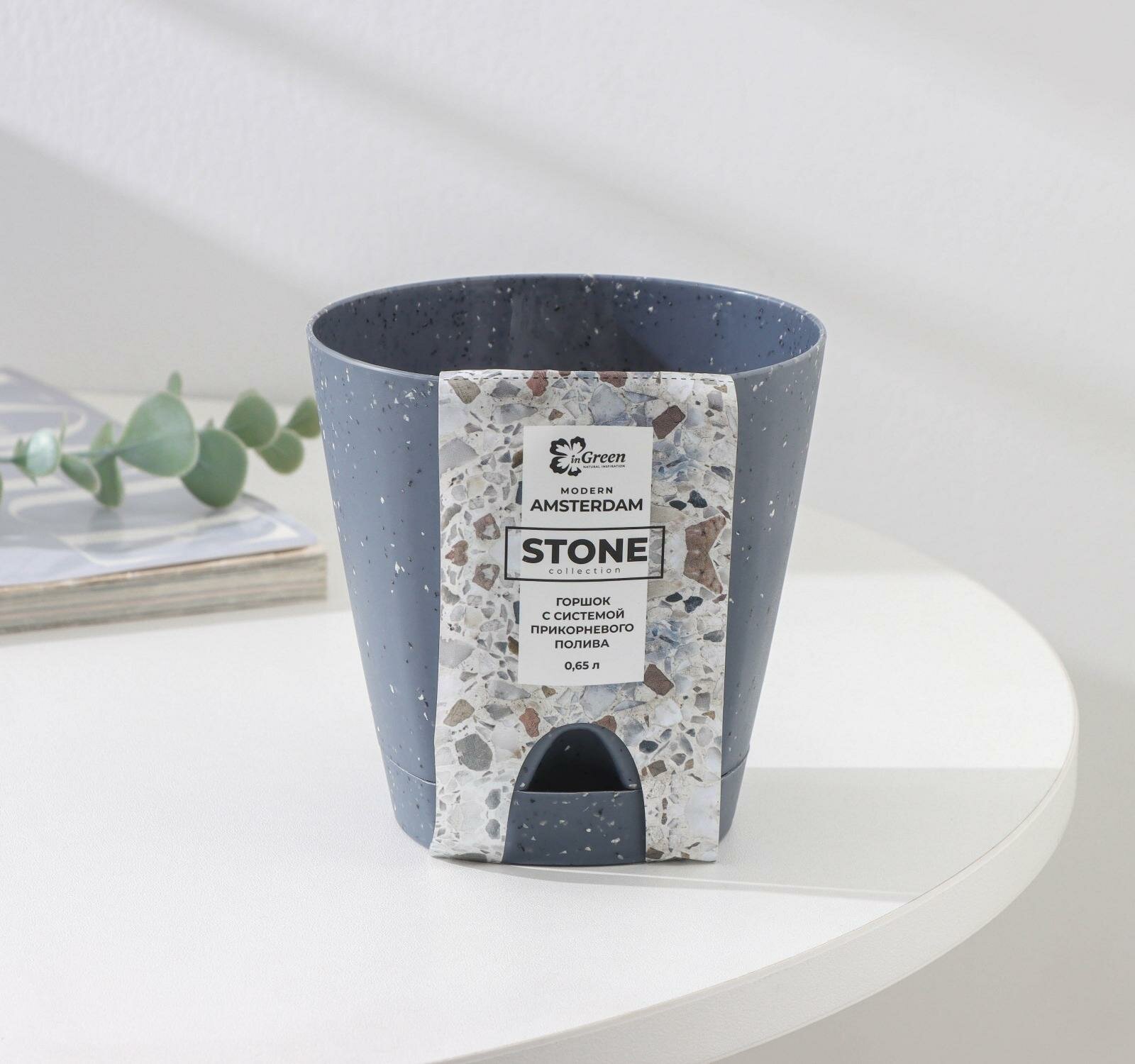 Горшок Amsterdam для растений и цветов с поддоном 0,65 л, (светлый камень) 6298