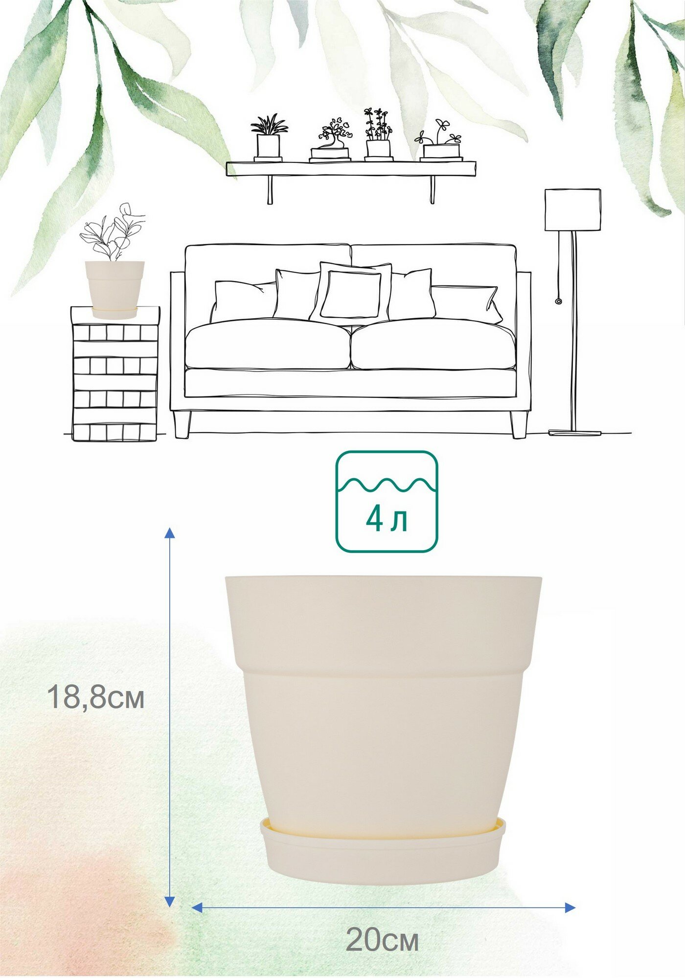 Горшок для цветов InGreen Villa de Fiori с фиксируемым поддоном 4л ,D200мм ,молочный шоколад ,20х20х18,8 см
